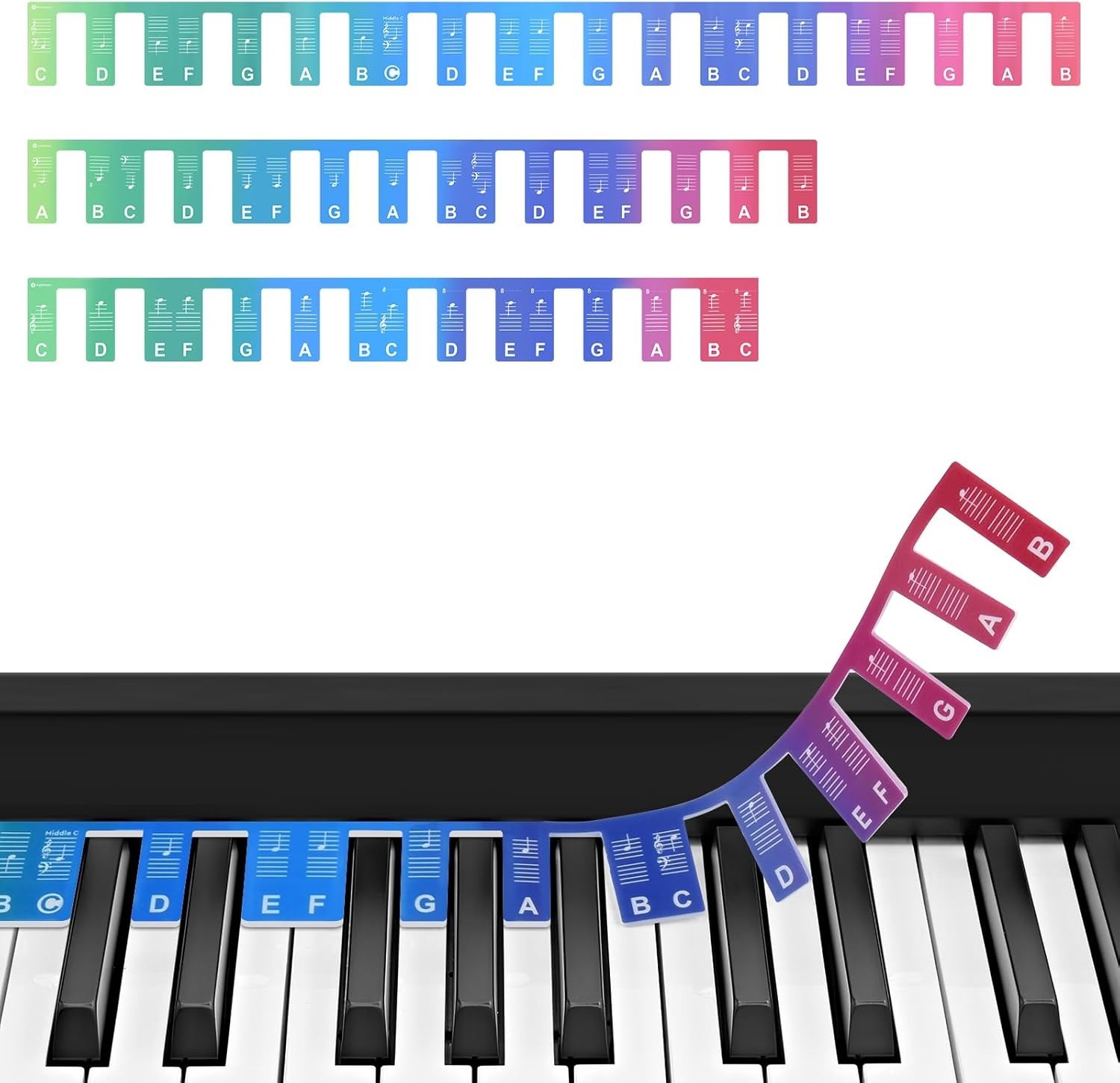 Removable Silicone Piano Keyboard Labels for Beginners - 88-Key Rainbow Guide