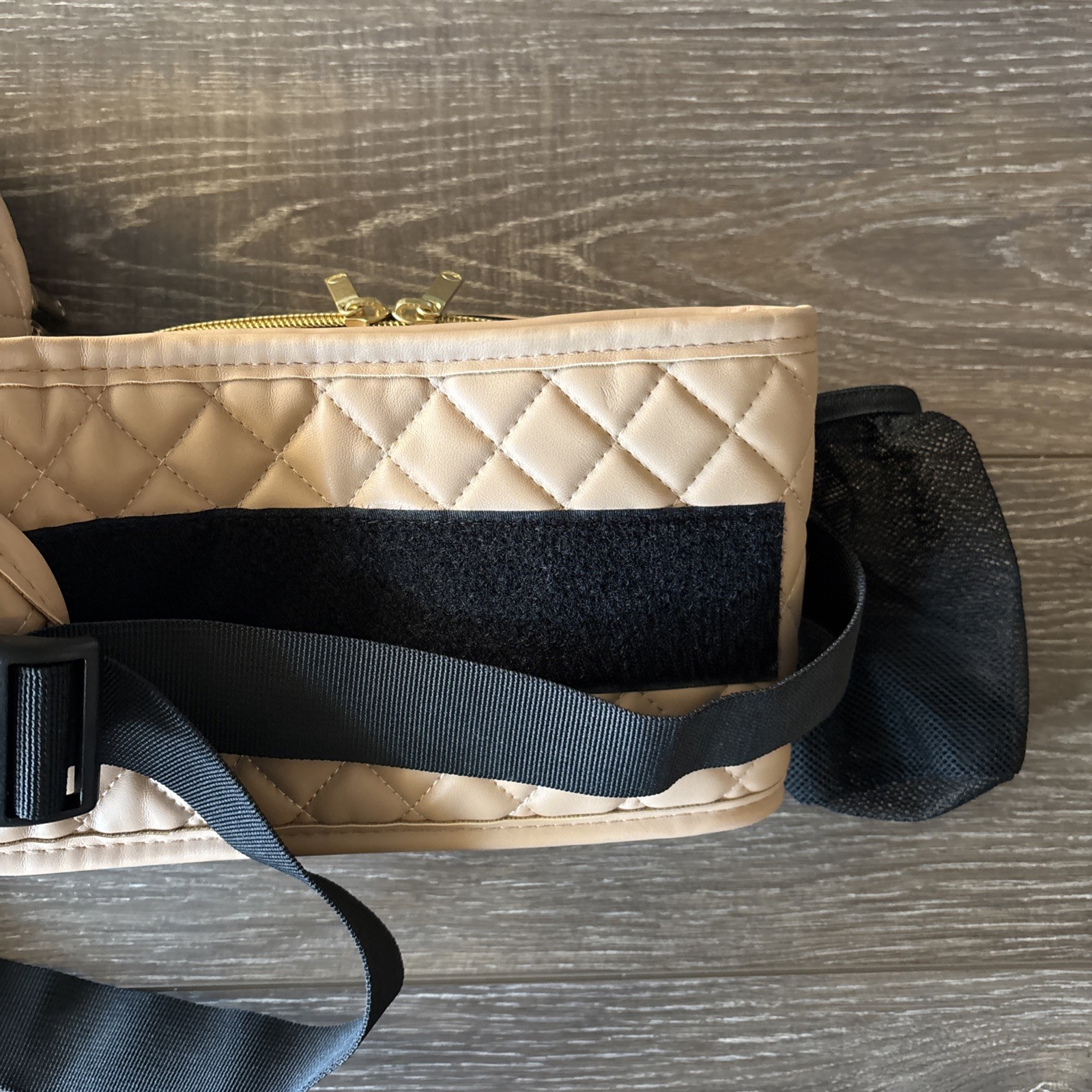 Tushbaby Vegan Leather Hip Seat Baby Carrier EUC - Tan Quilted Gold Zippers