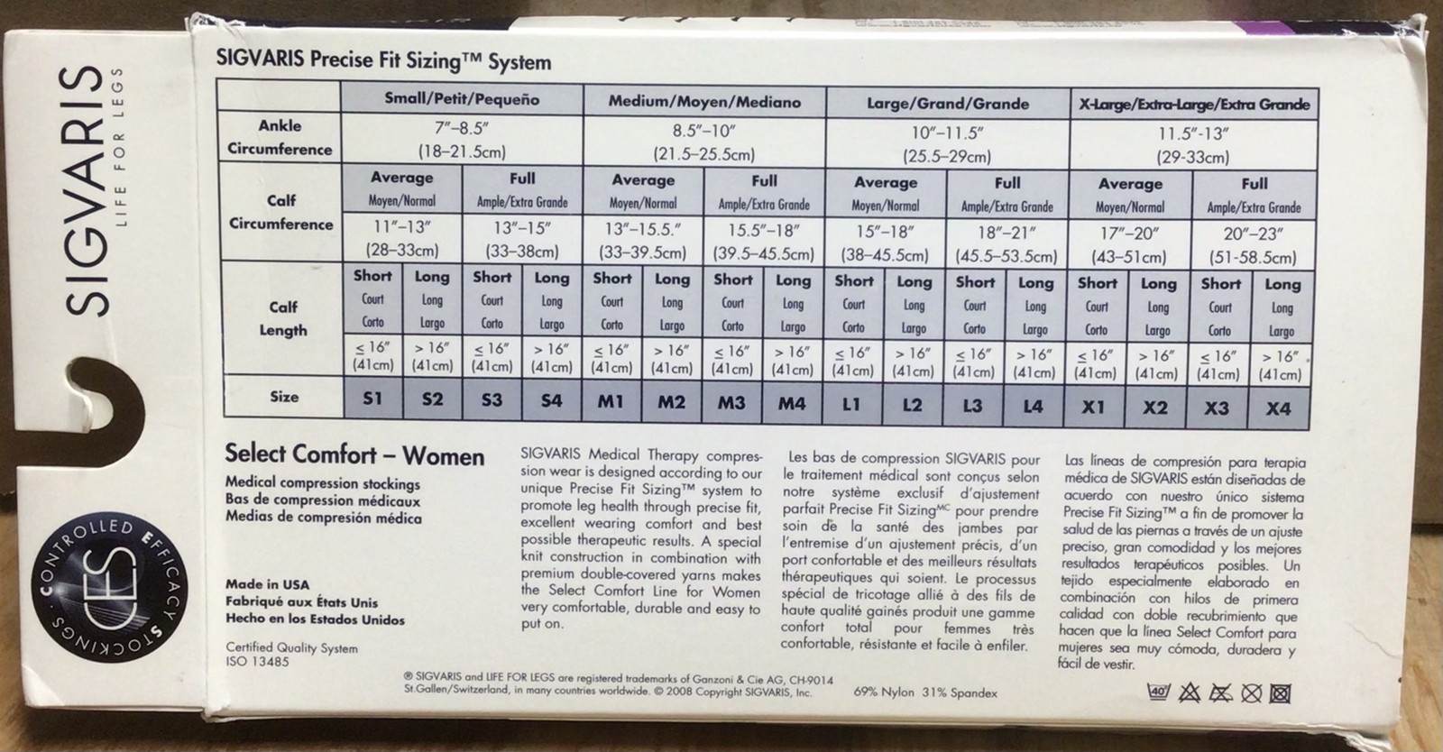 Sigvaris Comfort 20-30 mmHg Medical Compression Calf/Knee Stockings 862 Size S4
