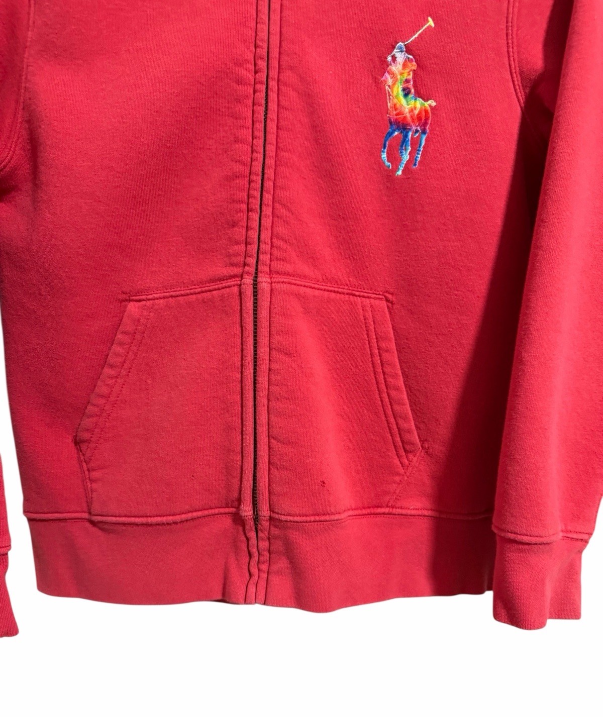 Polo Ralph Lauren Tie-Dye-Print Big Pony Fleece Hoodie Red Boys Size M 10-12