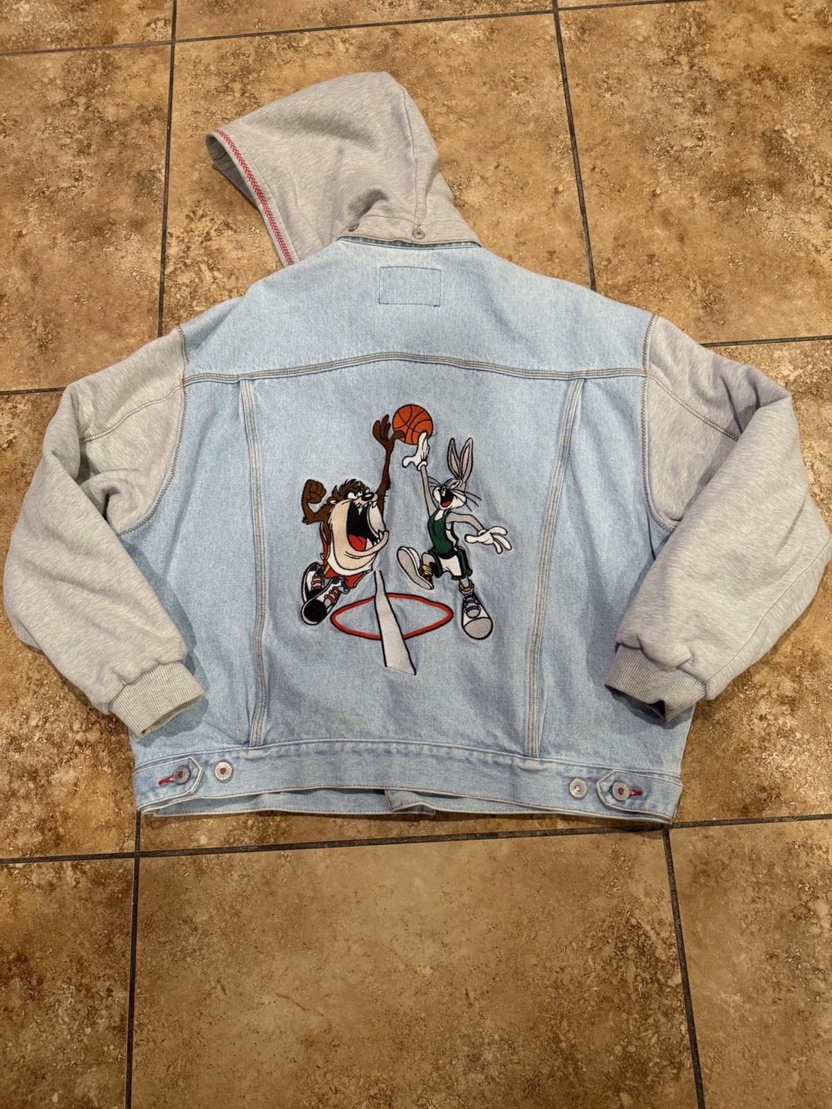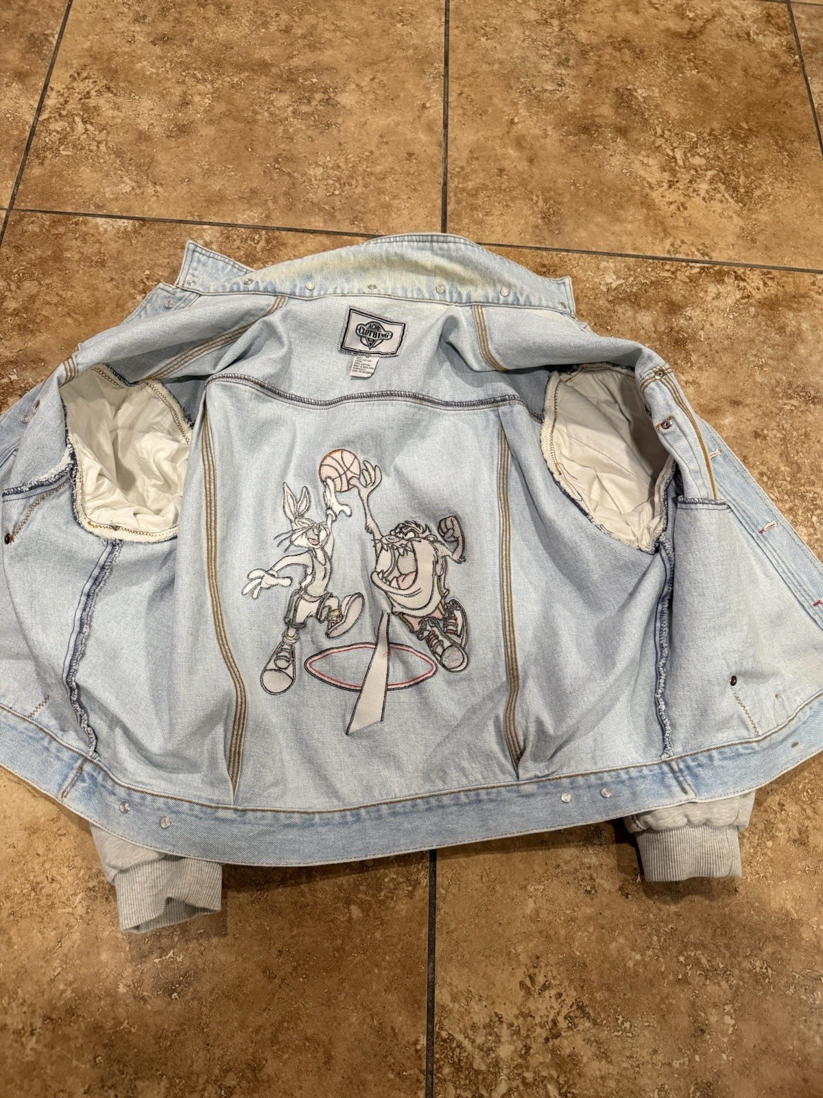 как выглядит VTG ACME LOONEY TUNES Denim Jacket with Cartoon Design Sz M фото