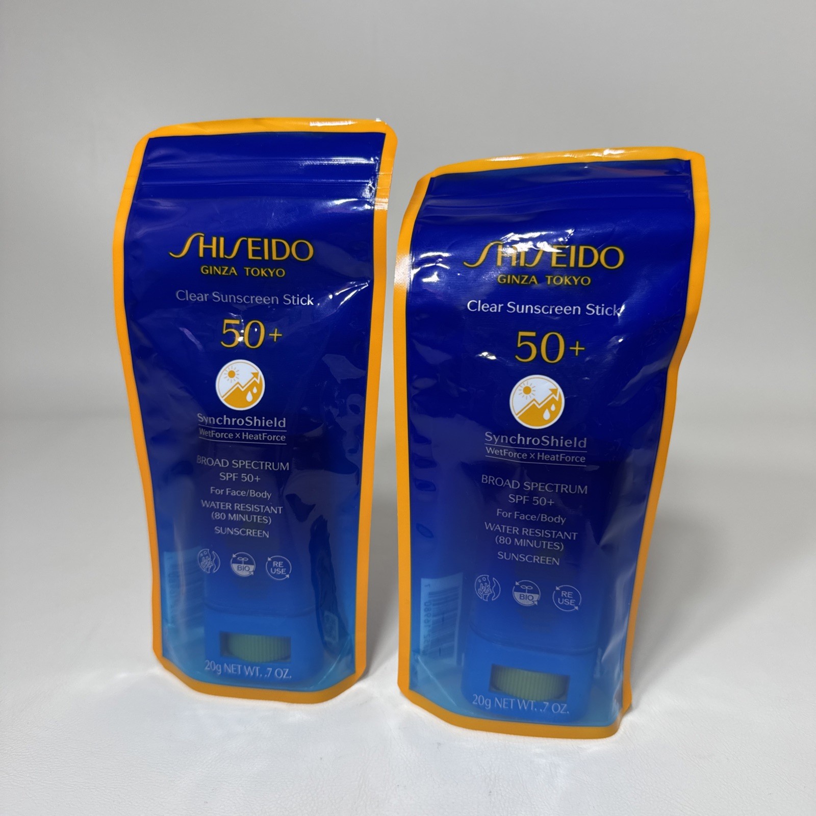 2x Shiseido Clear Sunscreen Stick SPF50 SynchroShield WetForce/Heat 20g/0.7 Oz