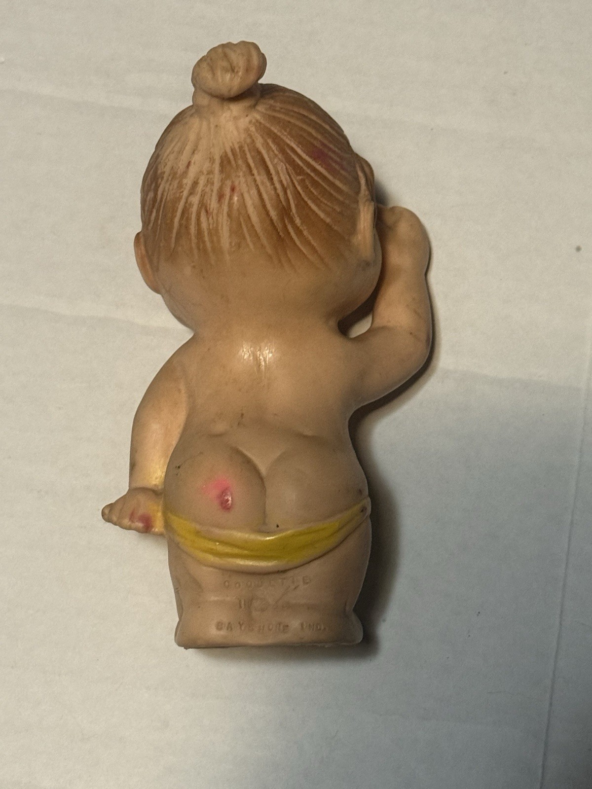 vintage rubber baby doll squeak toy from the 1950s squeaker is broken