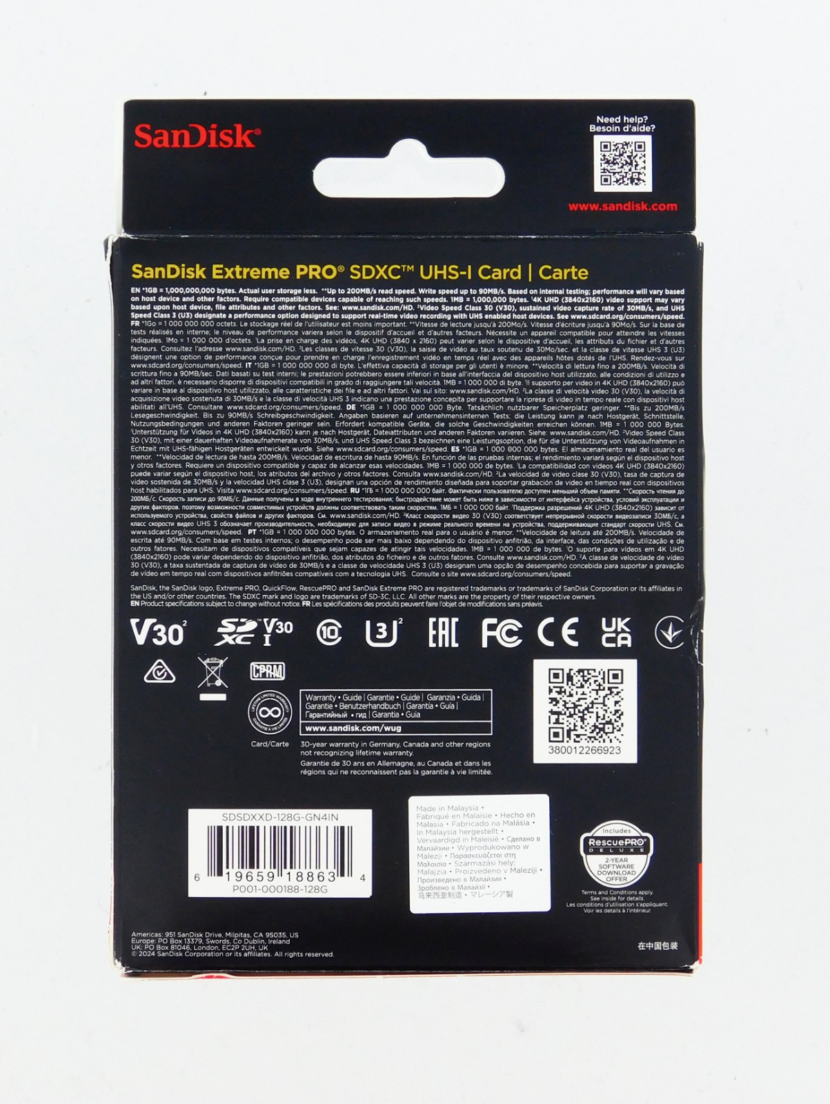 SanDisk Extreme PRO 128GB UHS-I/V30/U3/Class 10 SDXC Memory Card