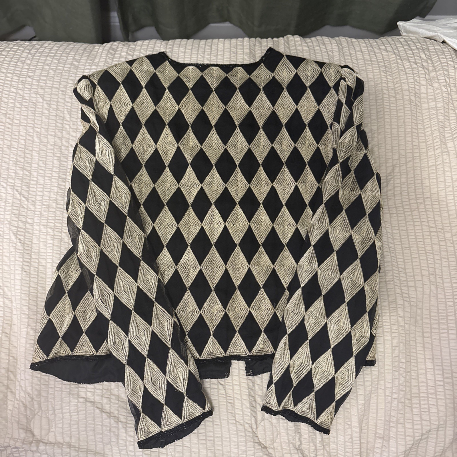 как выглядит VTG Laurence Kazar Lady Jacket Size XL Gold Black Diamond Silk Beaded NWT фото