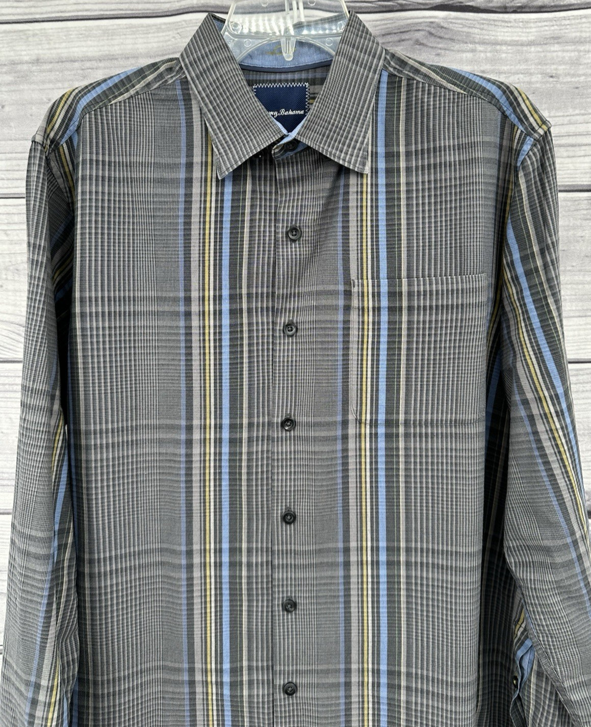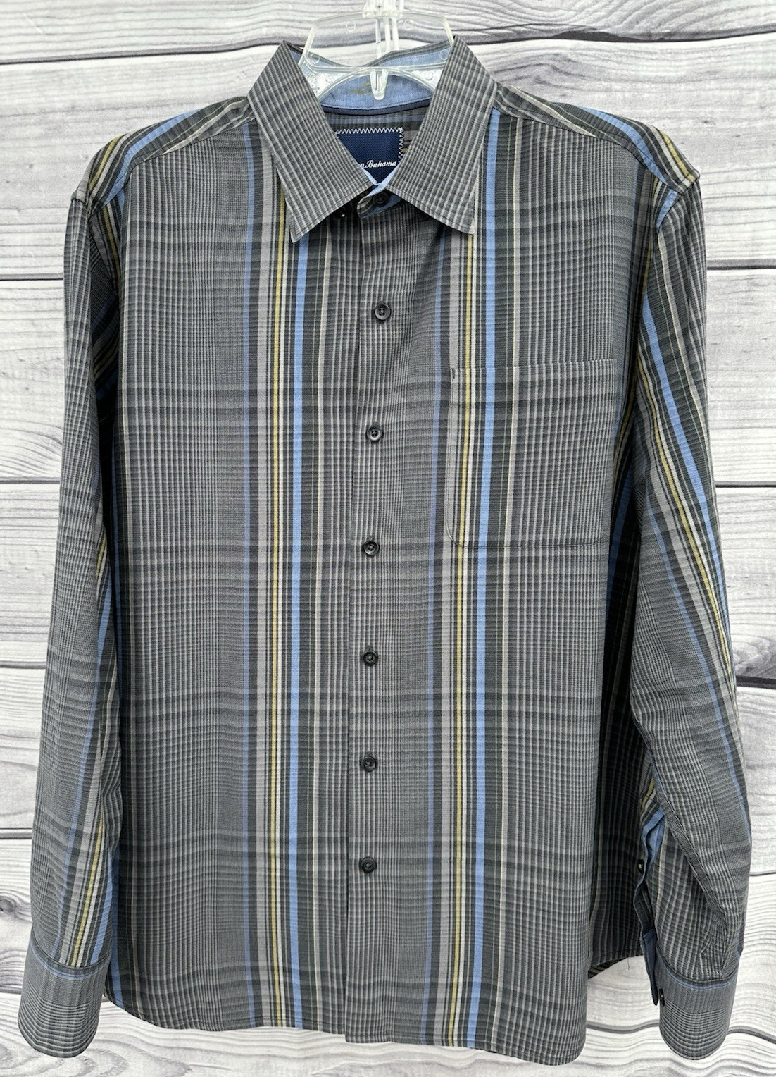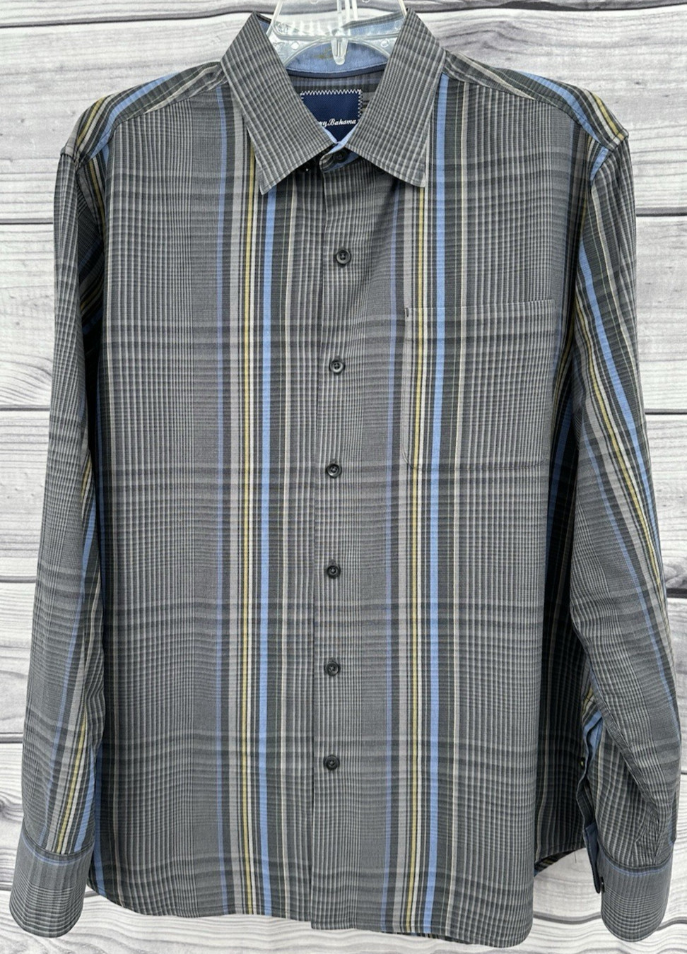 как выглядит TOMMY BAHAMA LONG SLEEVE BUTTON FRONT SHIRT Mens Size Medium GREY PLAID фото