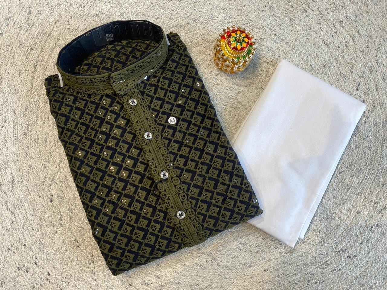 Men's Indian Kurta Pajama Set Rayon Cotton Embroidered Wedding Party Ethnic Wear