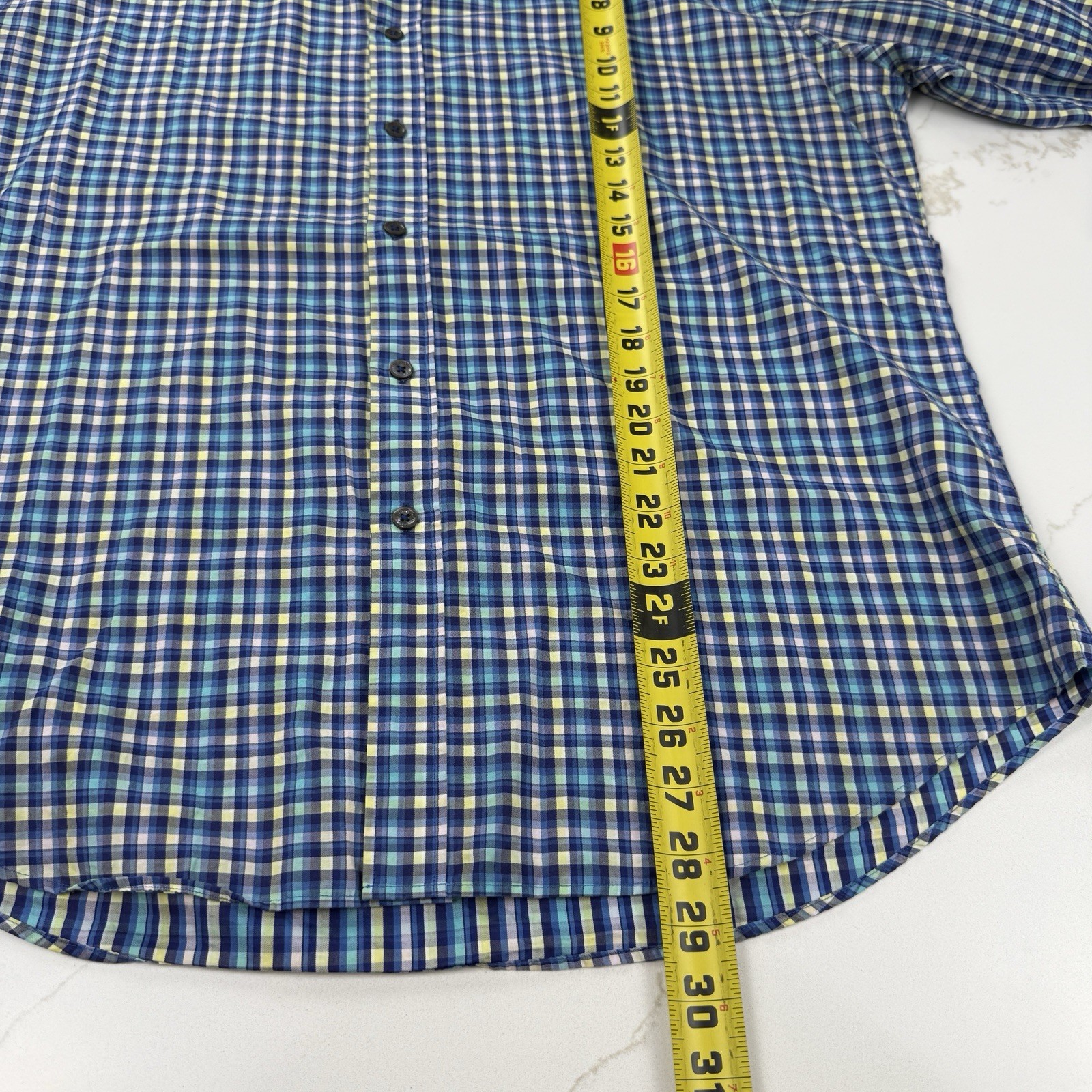 Bugatchi Button Down Shirt Mens L SEE MEASUREMENTS Purple Check Shaped Fit