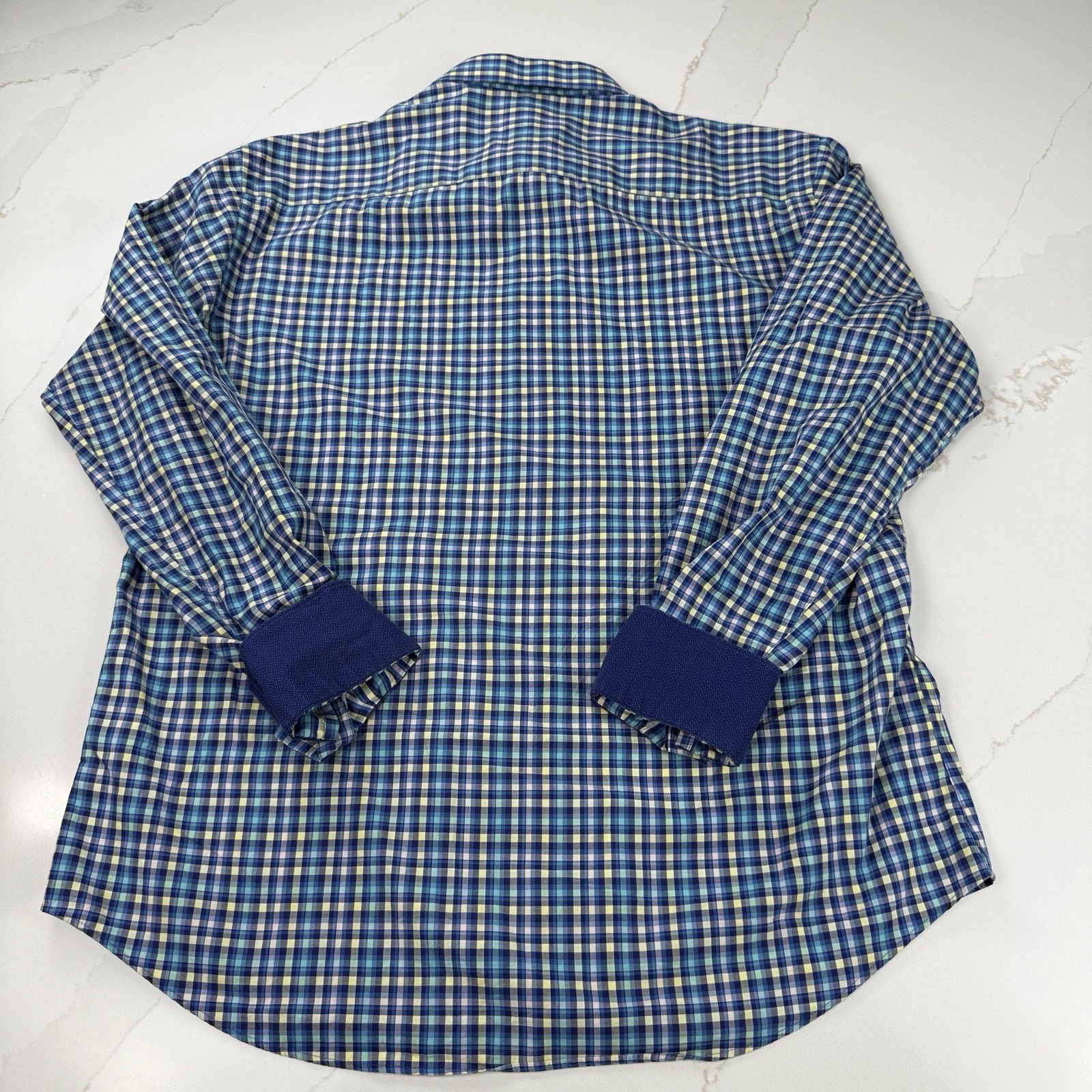 как выглядит Bugatchi Button Down Shirt Mens L SEE MEASUREMENTS Purple Check Shaped Fit фото