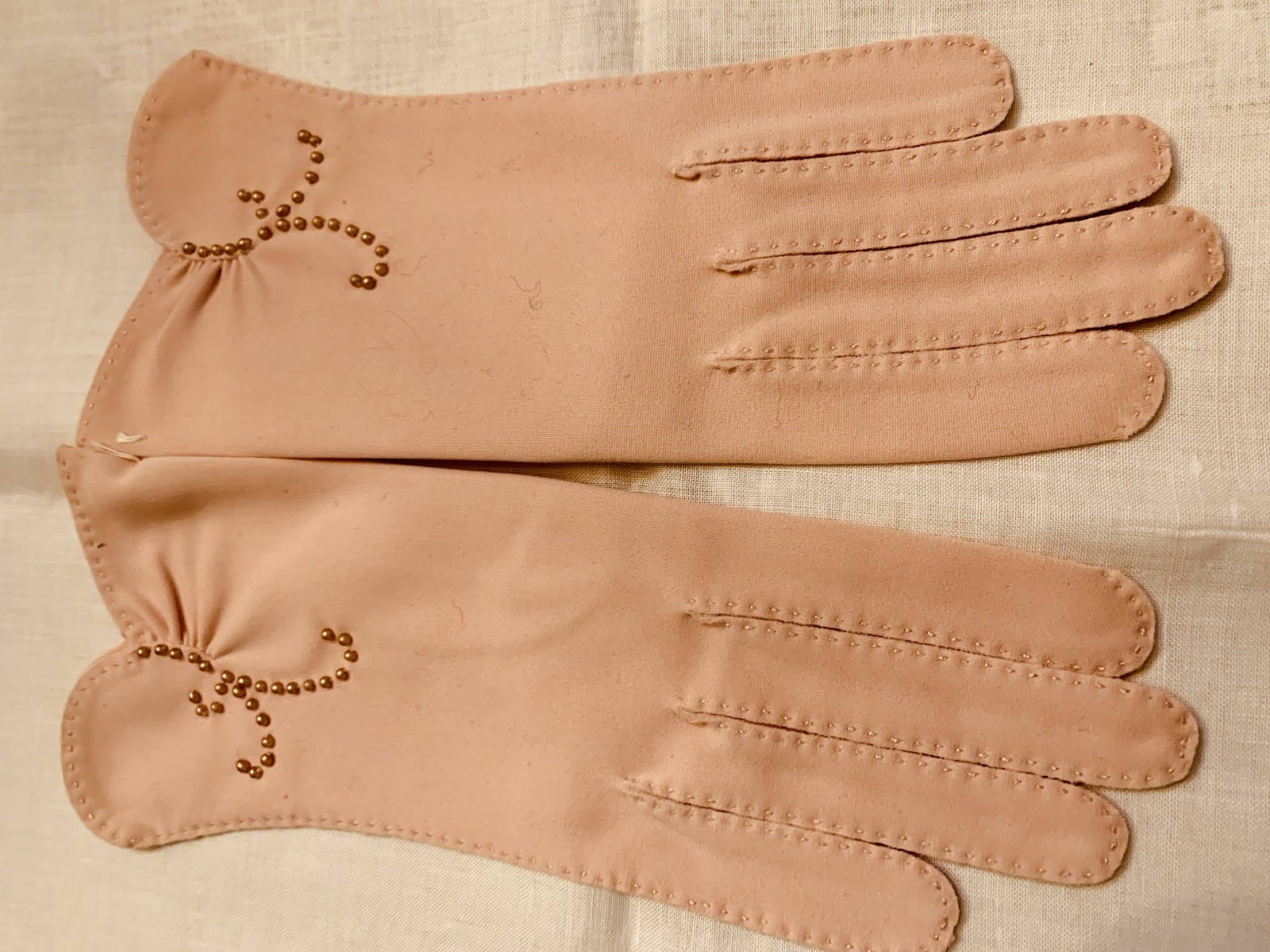Vintage Pink Nylon Beaded Gloves Dawnelle Size 7