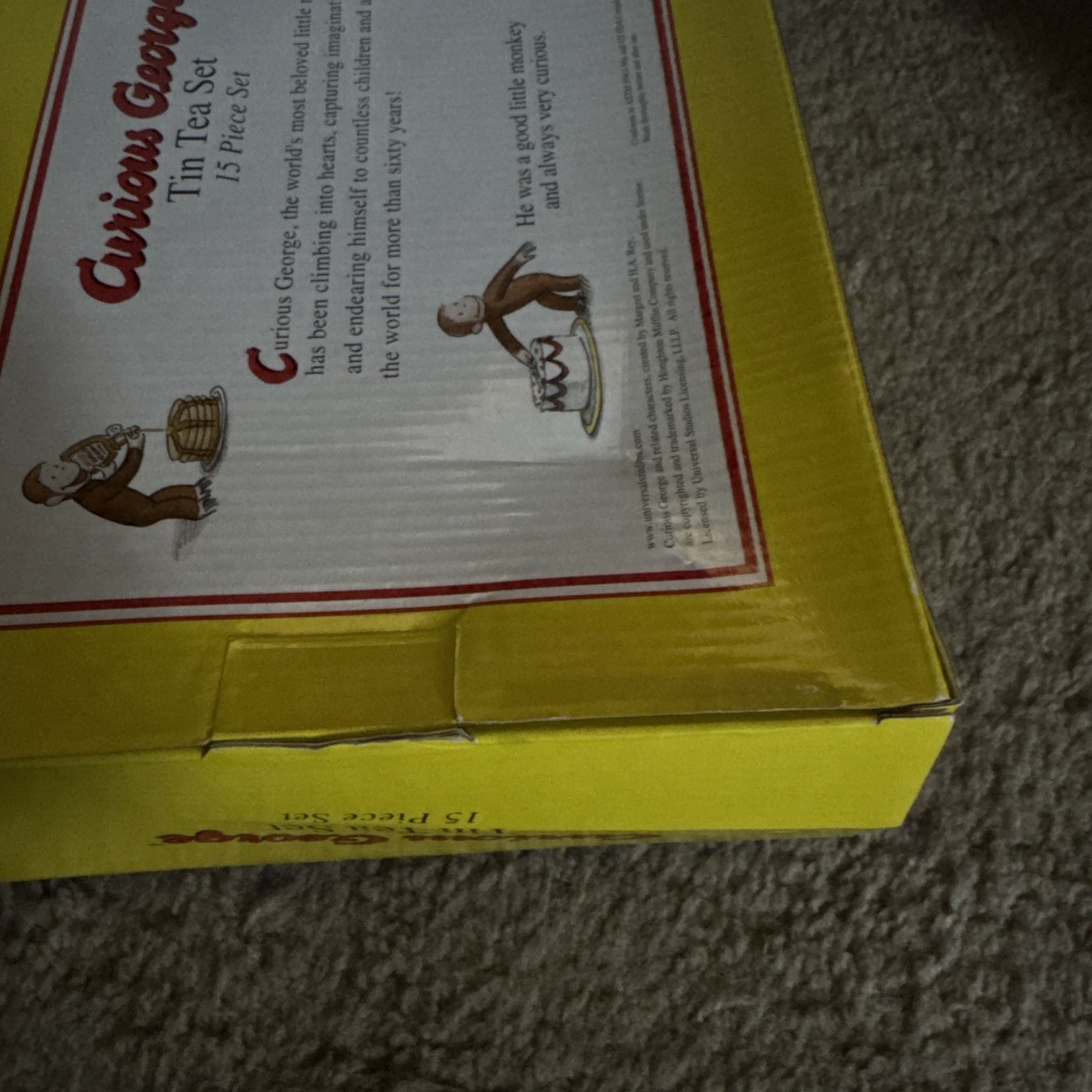 Schylling Curious George 15-Piece Tin Tea Set Teapot, Cups, Plates, Tray NIB