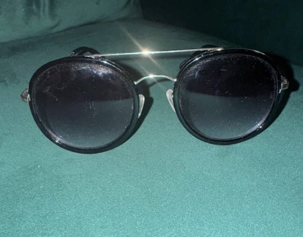 как выглядит Vtg Oscar DeLa Renta Round Black Aviator Slim Gold Arm sunglasses фото