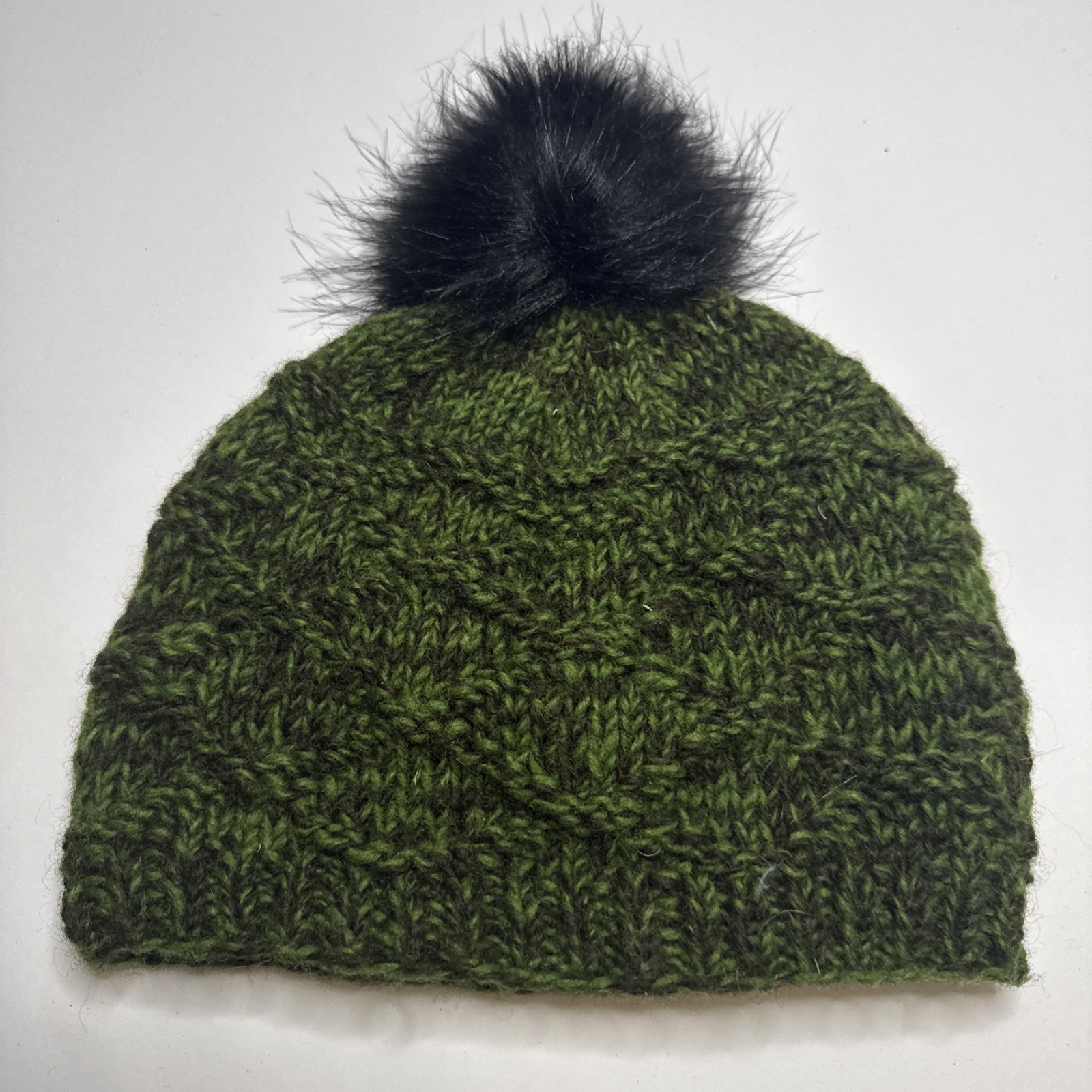 как выглядит Unbranded Forest Green Chunky Knit Beanie Black Faux Fur Pom Pom Hat One Size фото