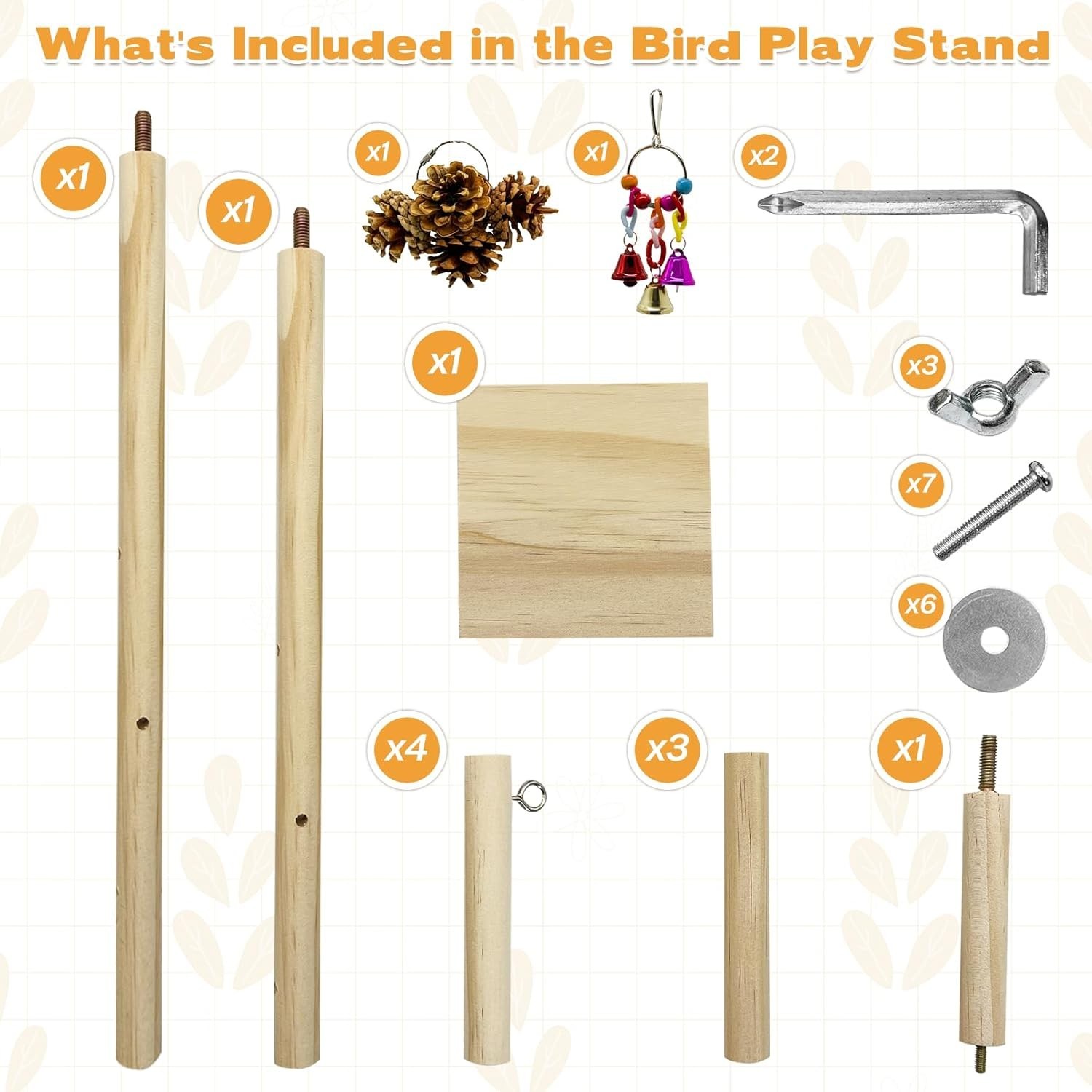 Wooden Bird Play Gym with Toys Perches For Small Birds