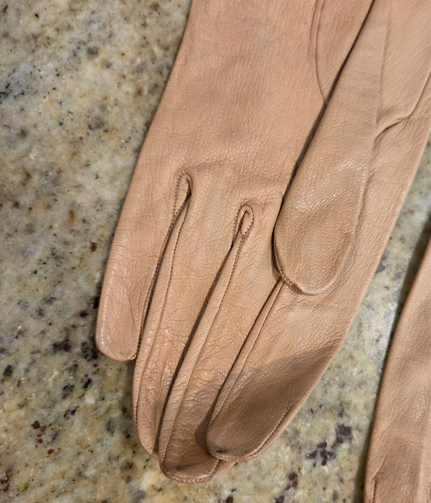 Vintage Womens Size M 7 Beige Leather Formal 10.5 Long Gloves France