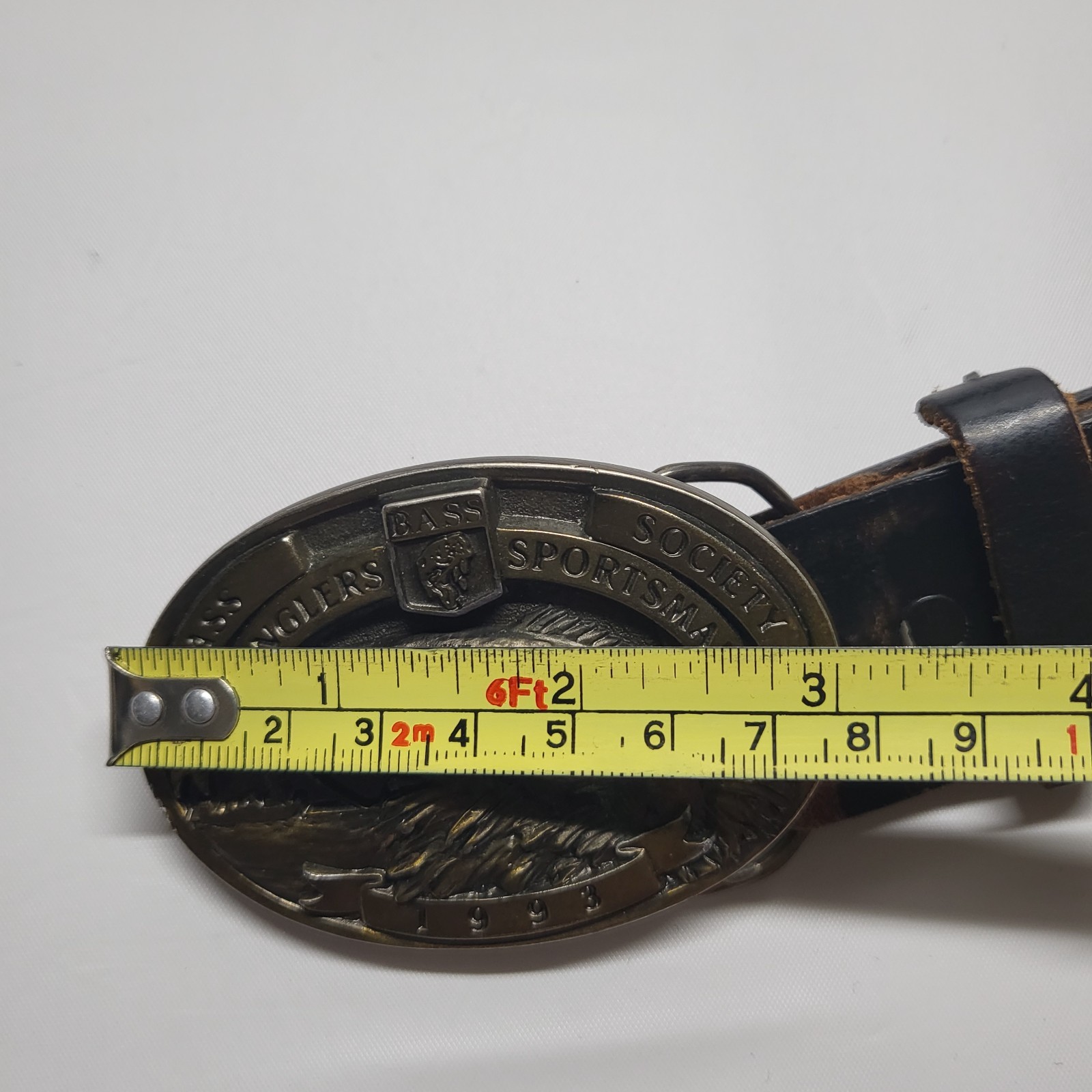 Vintage Bass Belt Buckle Brass 1993 Fishing Anglers Sportsman Society