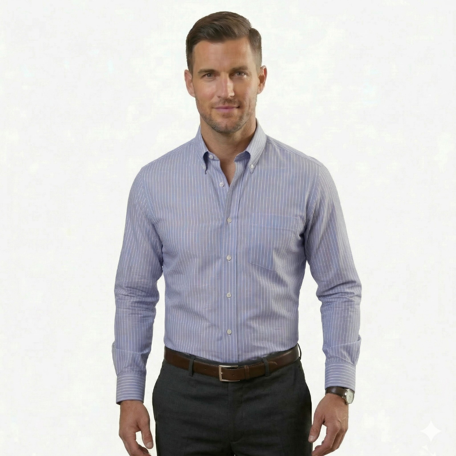 New Croft Barrow Fitted Button-Down-Collar Blue Stripe Dress Shirt 17.5-32/33