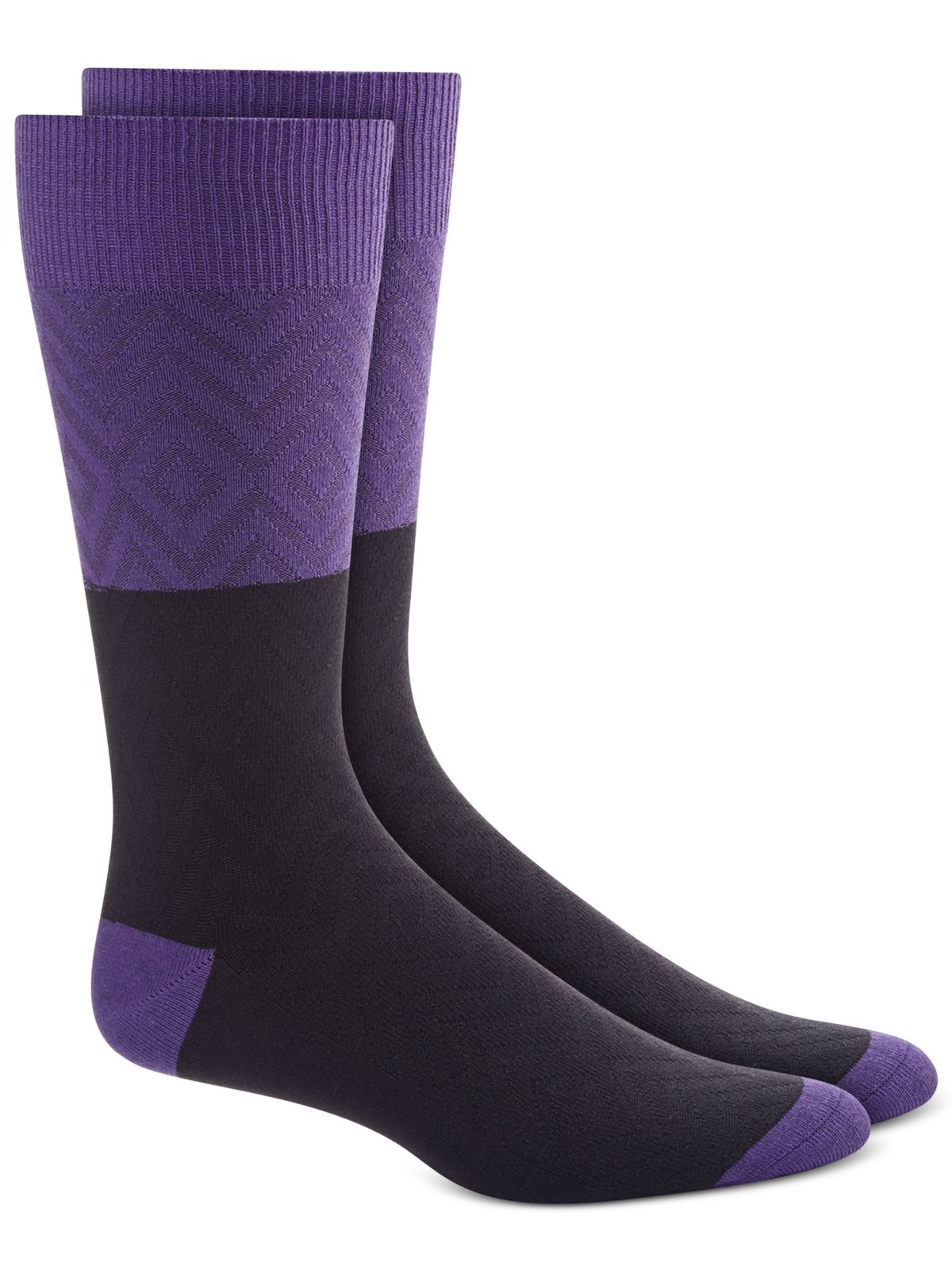 ALFANI Mens Purple Color Block Moisture Wicking Seamless Casual Crew Socks 10-13