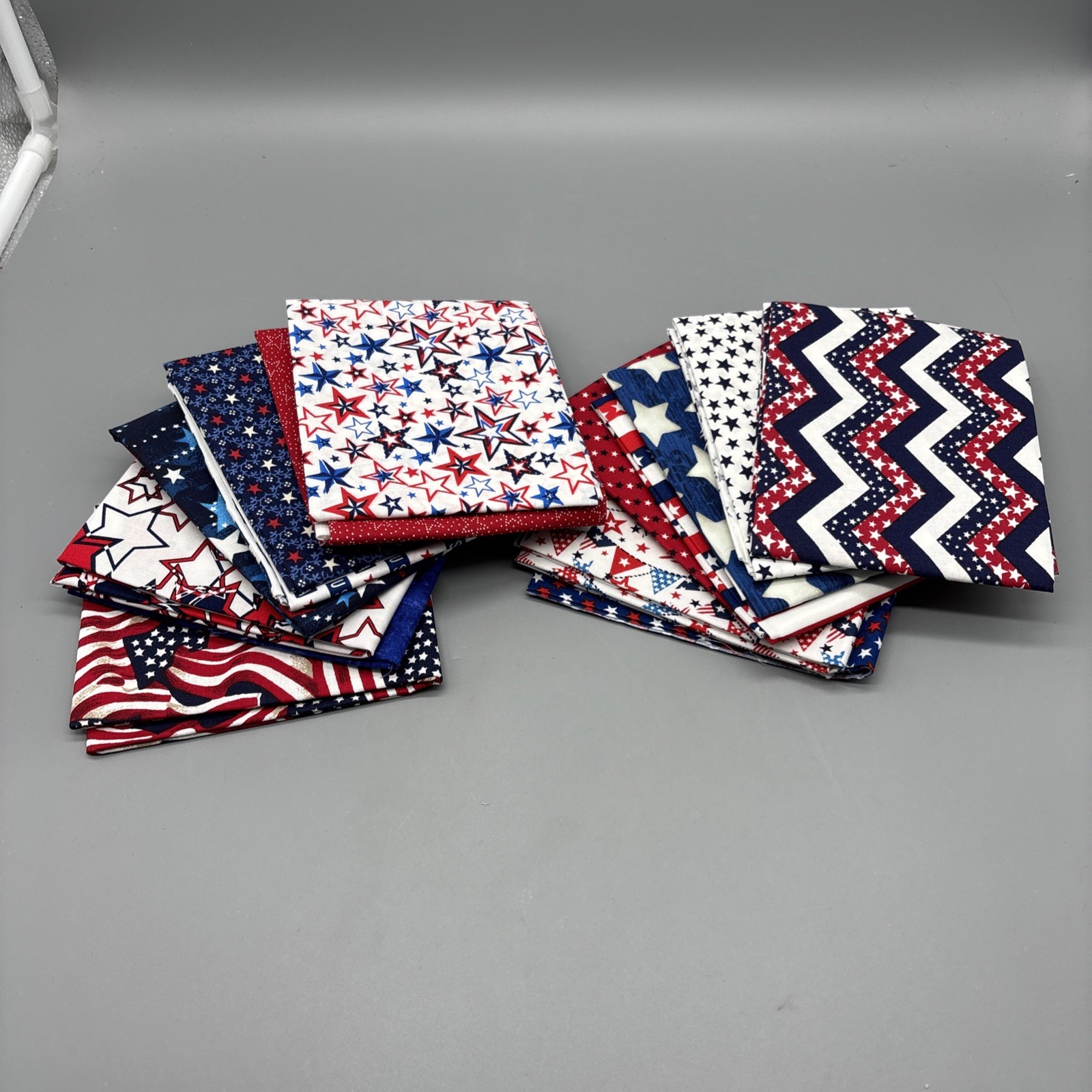 Usa American Flag Fabric For Quilting 16 Large Squares Of Different Patterns