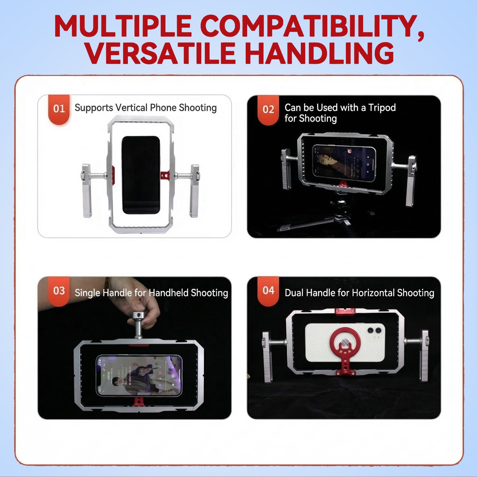 Magnetic Phone Video Rig Cage with Dual Handles 360 Rotatable for iPhone 17-12