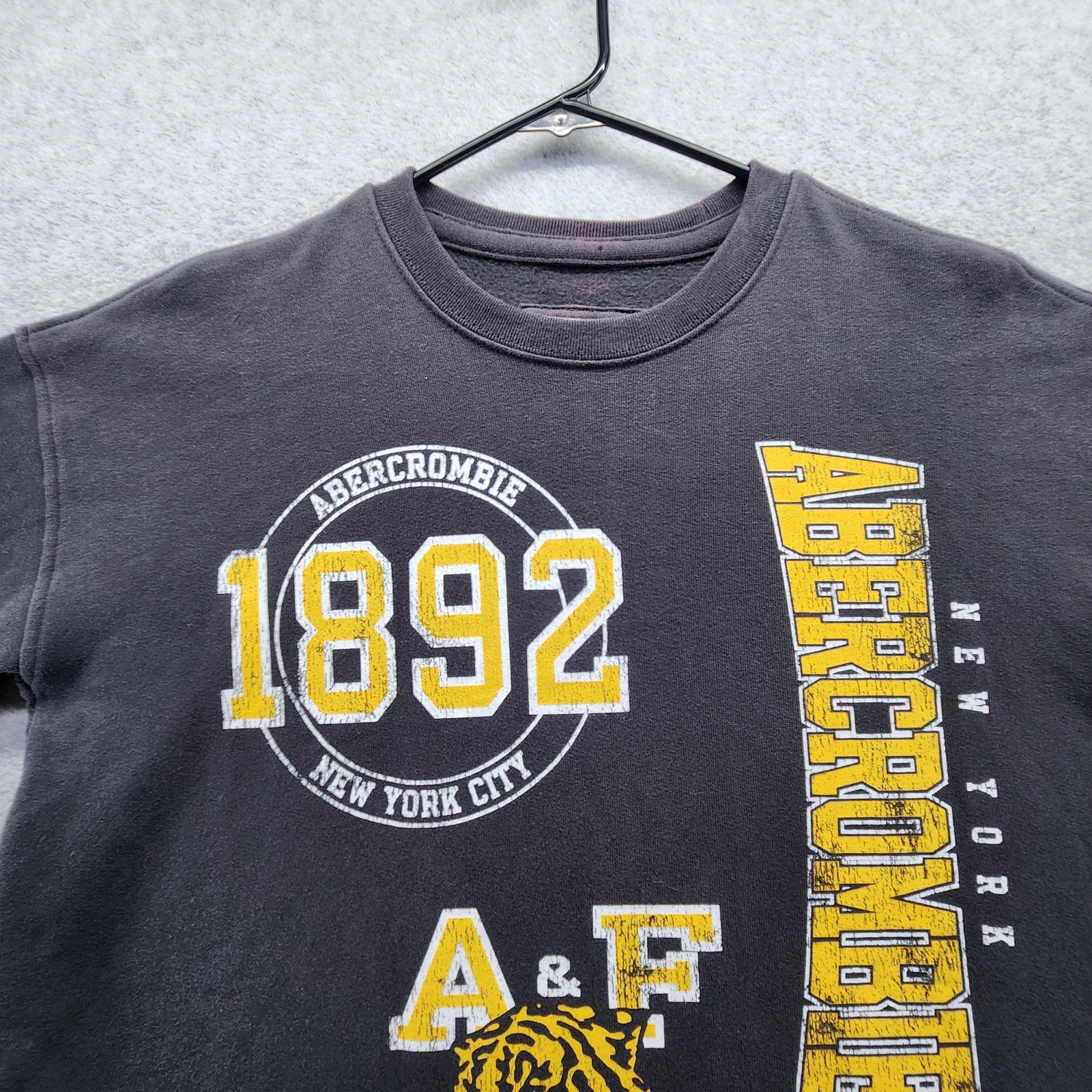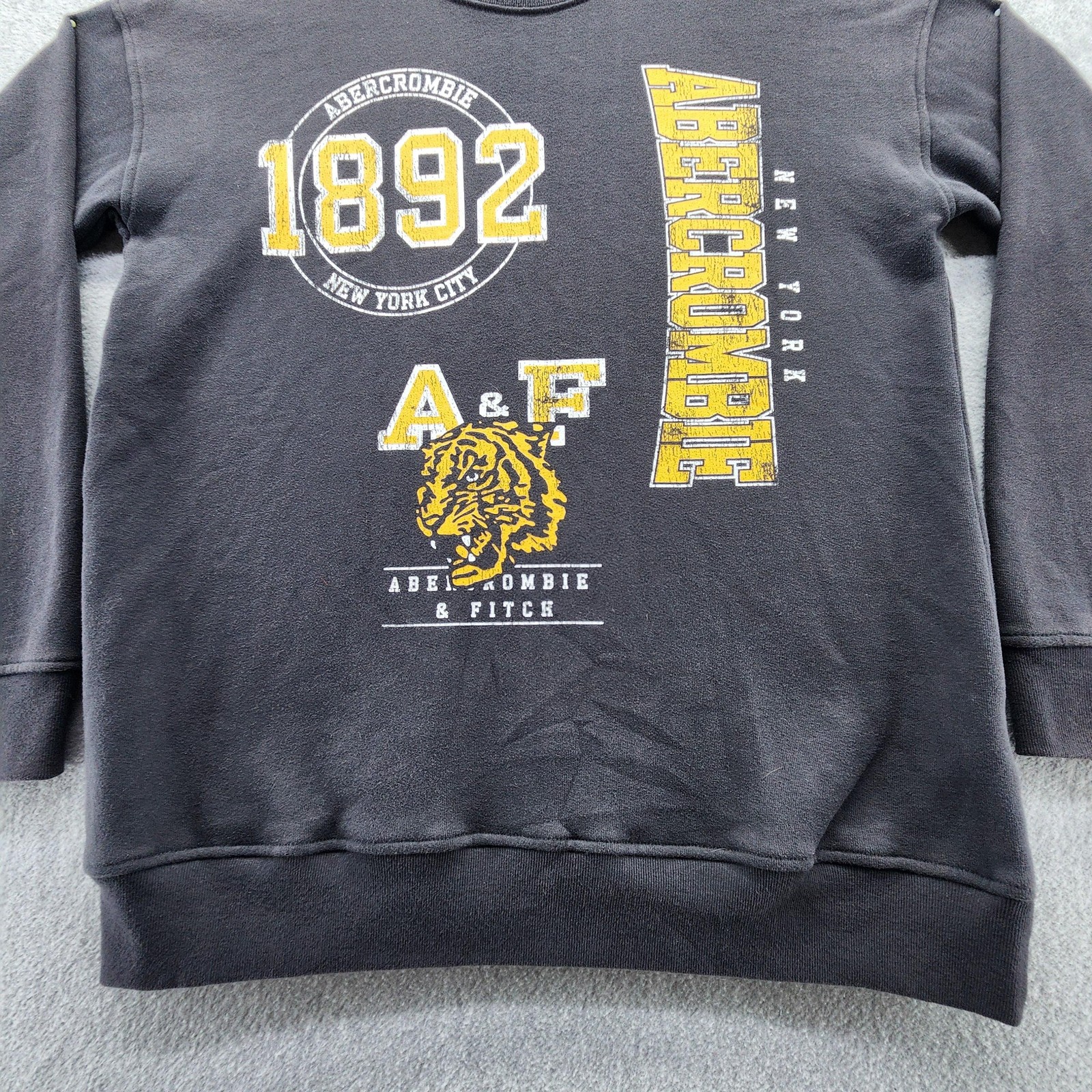 Abercrombie Kids Sweatshirt Youth 15/16 Black Crewneck 1892 A F Tiger Graphic