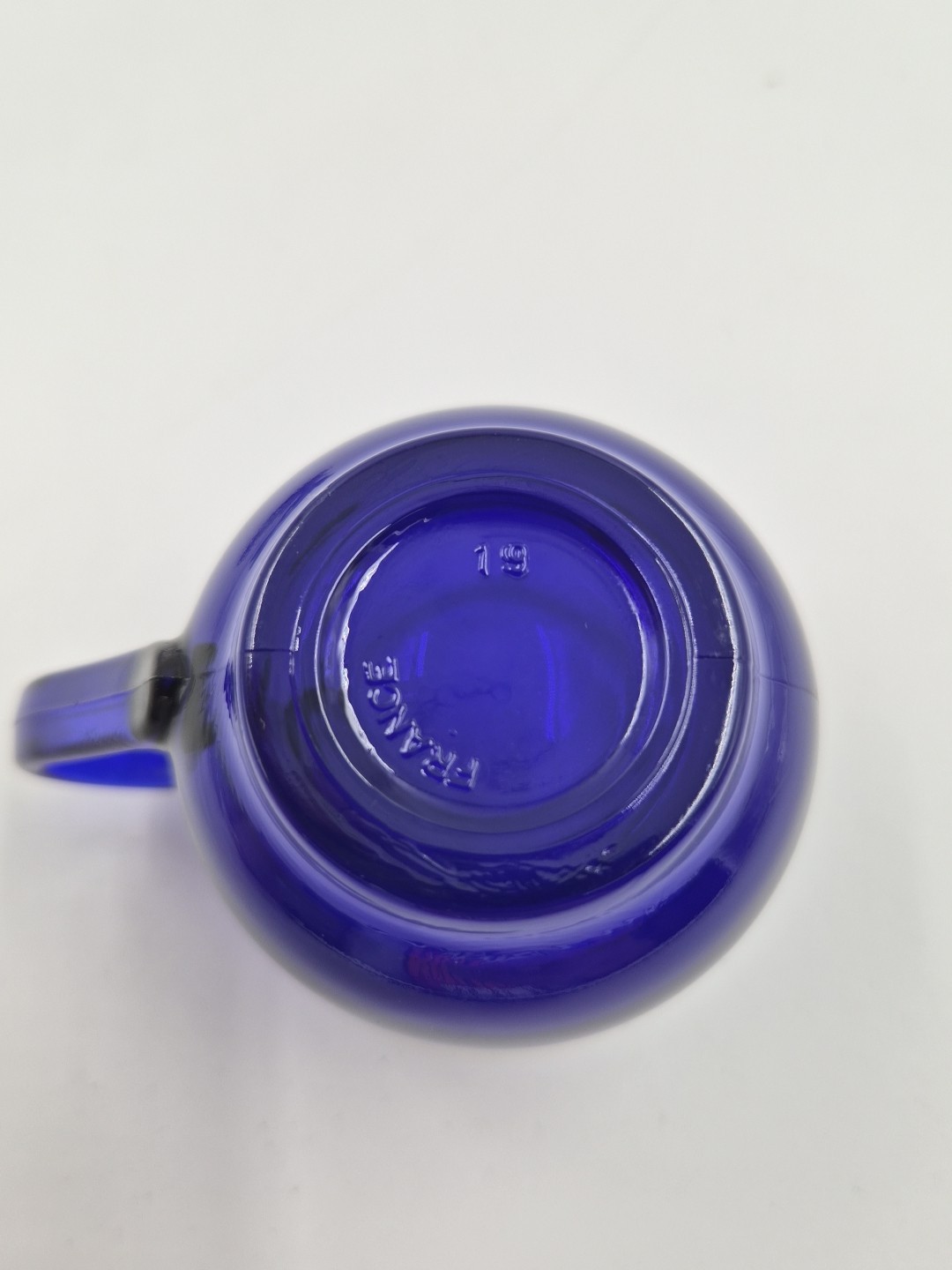 • Miniature Cobalt Blue Glass Cup Teacup Doll 2" France Small Saucer Handle Used