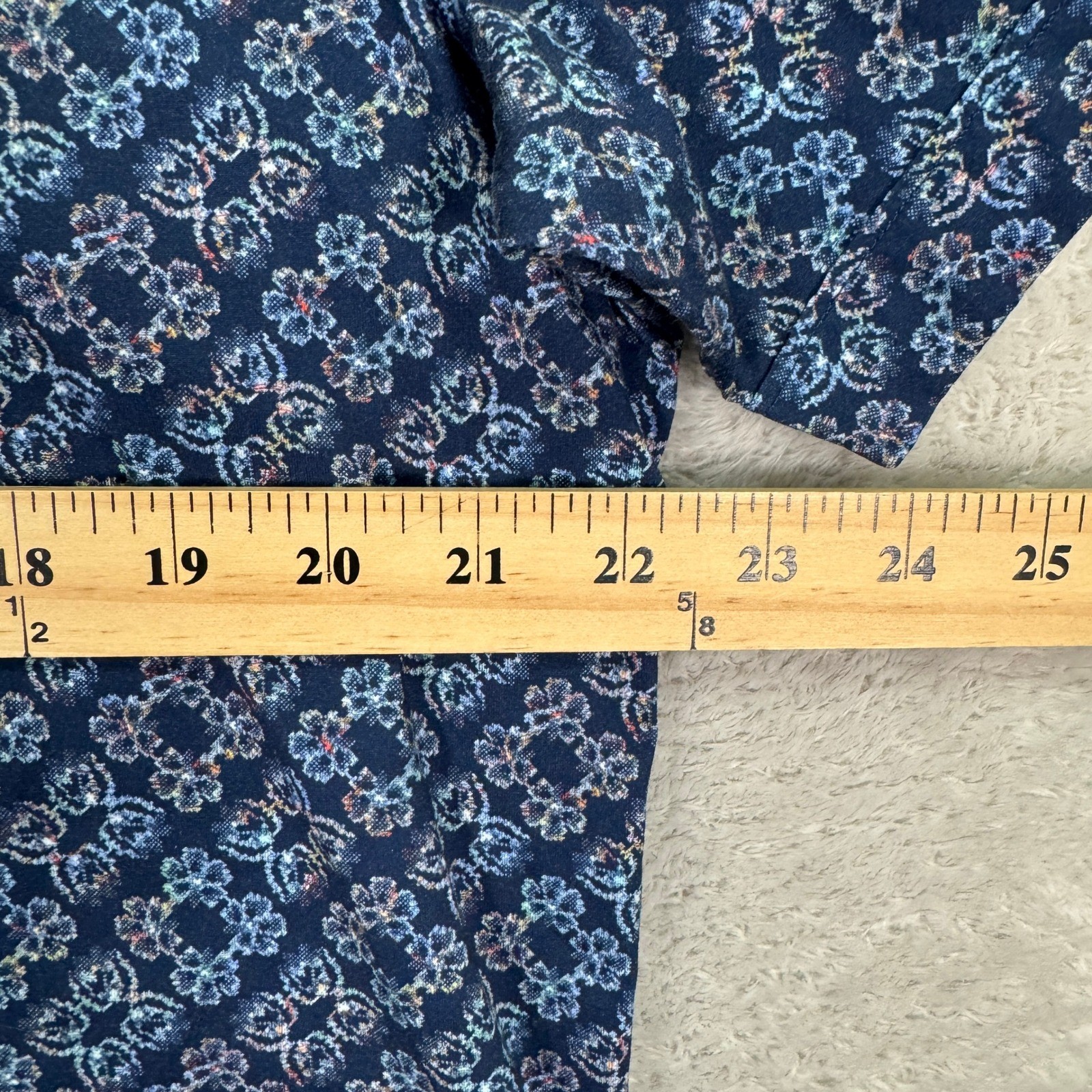 как выглядит BUGATCHI Mens L Short Sleeve Button Down Shirt Blue Floral Print Comfort Stretch фото