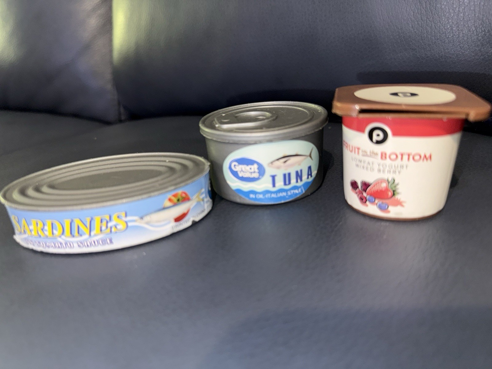 как выглядит Mixed Lot Of Childrens Play Kitchen Food Cans Melissa Doug Sponge, 6 Cans фото