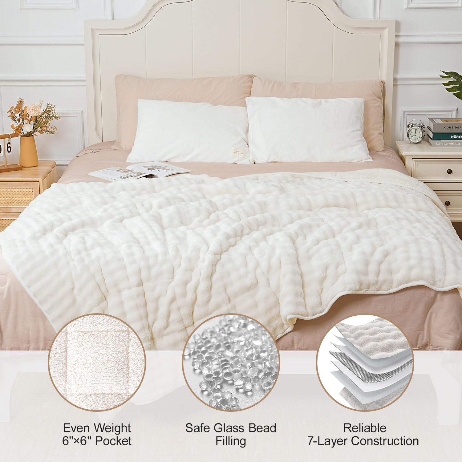 Weighted Blanket 15lbs for Adults, Fluffy Bubble Sherpa Fleece Weighted Blank...