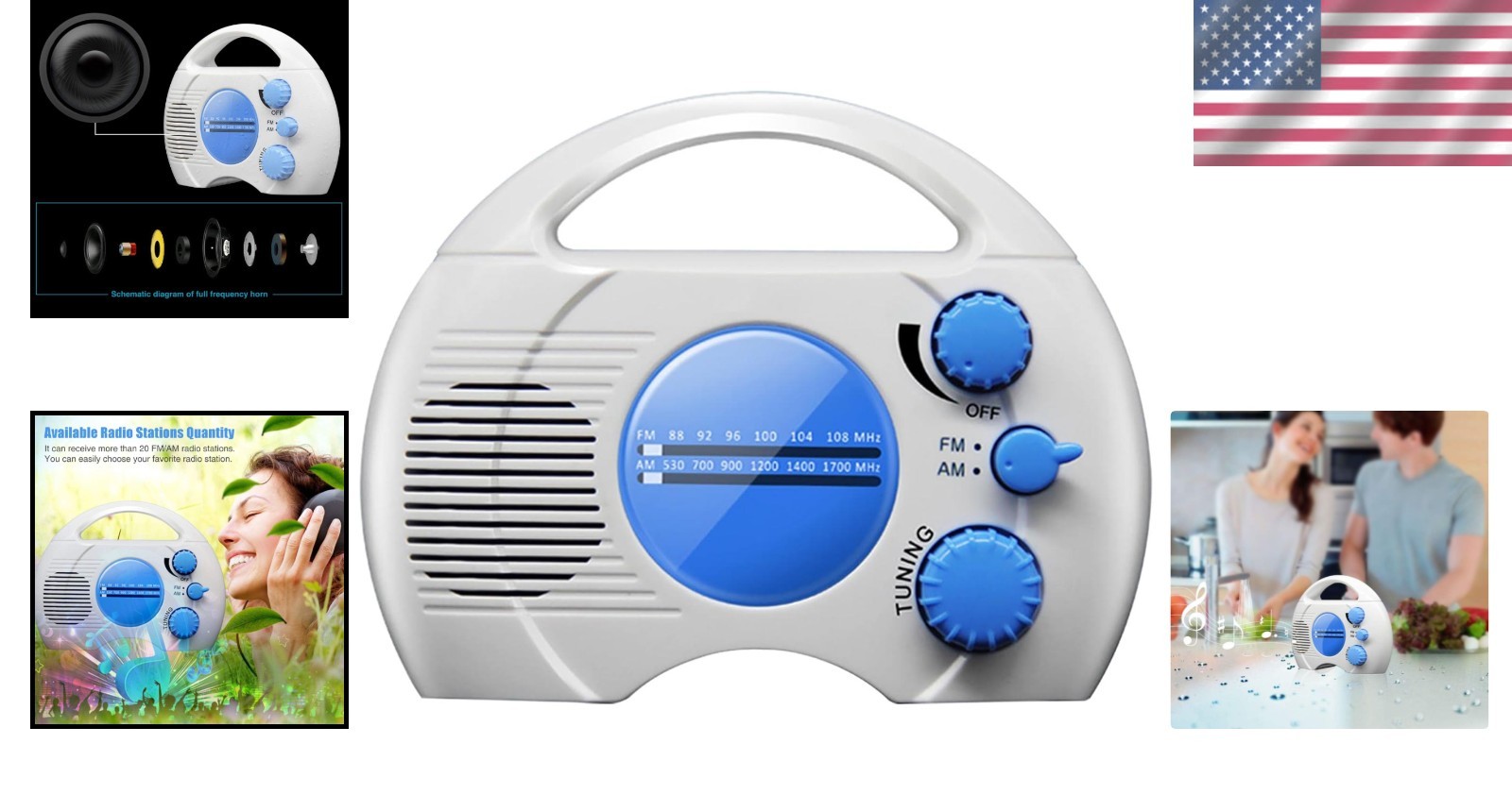 Elegant Waterproof Shower Radio with Built-in Speaker - Portable Blue/White