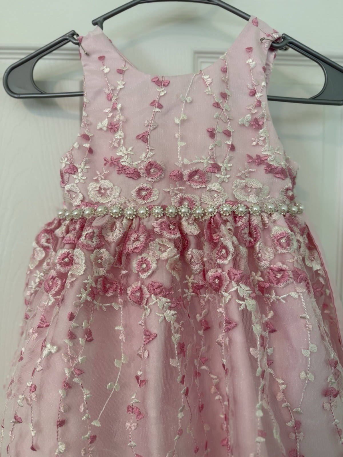 как выглядит Childrens Party Dress, Pink W/ 3 Layers, Pearls,Flowers Sz 5 American Princess фото