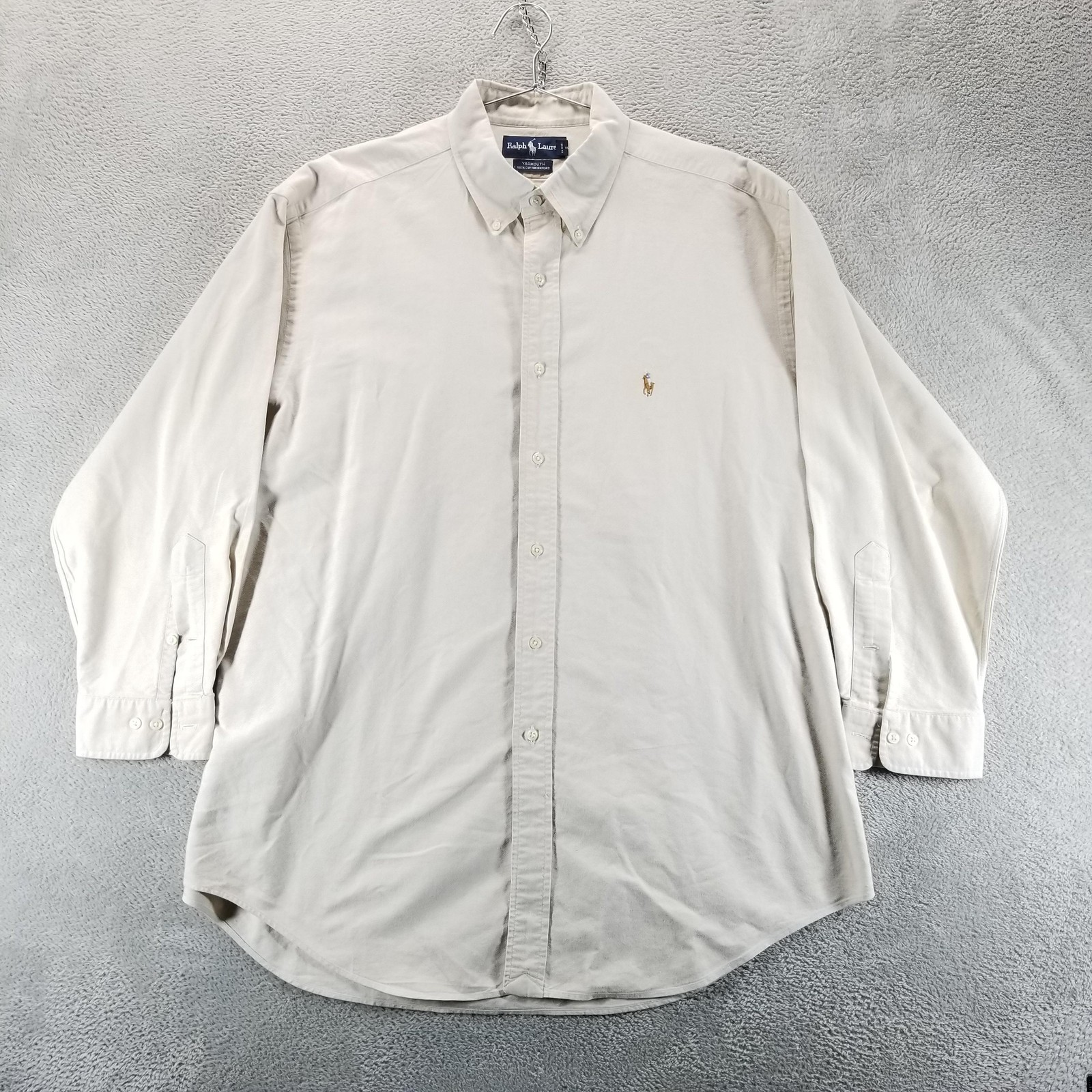 как выглядит Polo Ralph Lauren Shirt Mens 17 32/33 Beige Yarmouth Oxford Button Down Pony фото