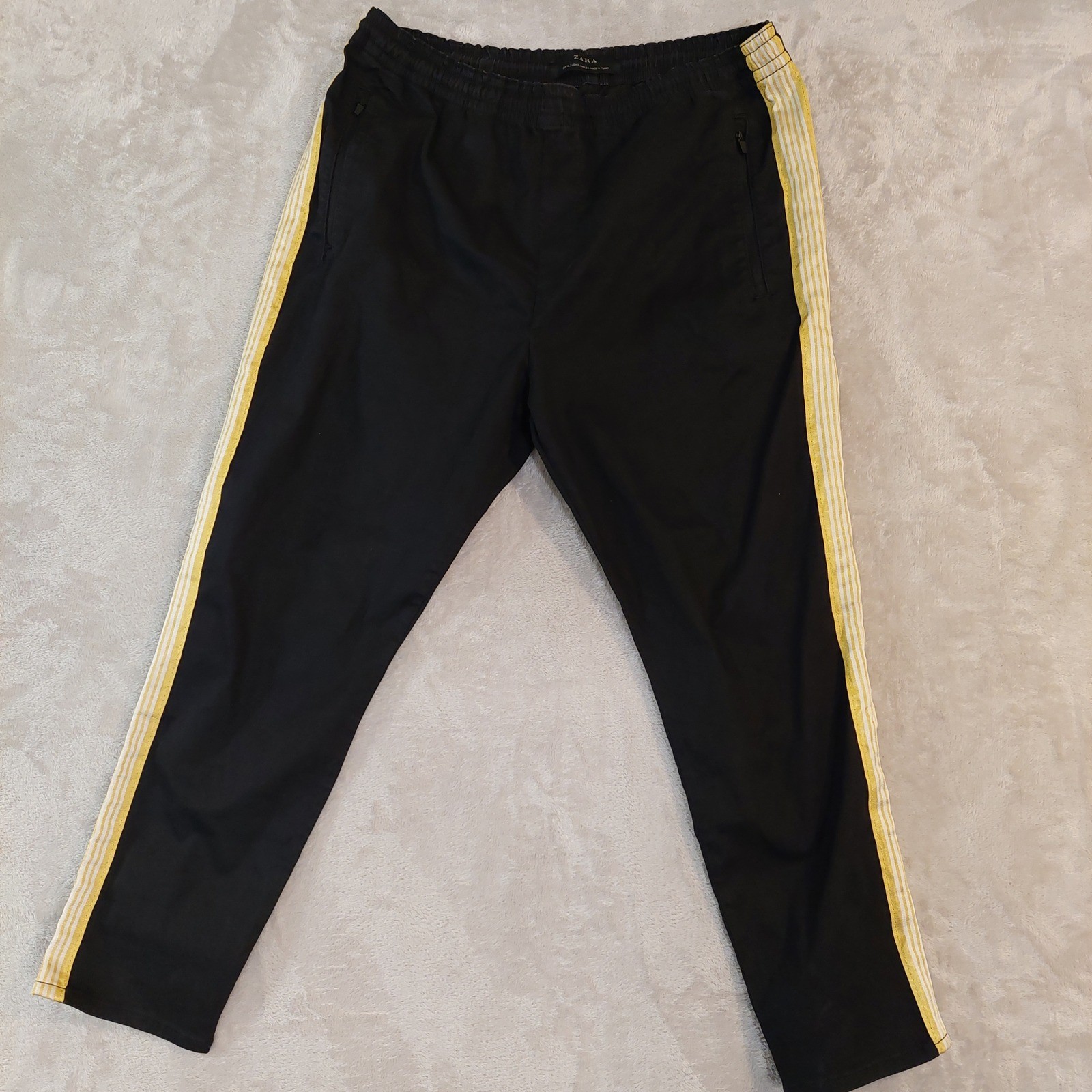 ZARA unisex Black Track Pants Athletic Stripes Zip Pockets Elastic Waist XL