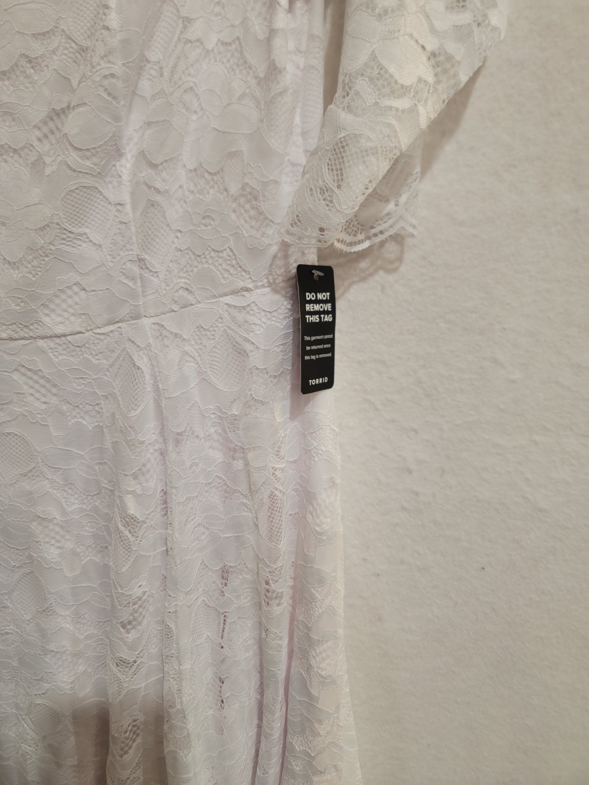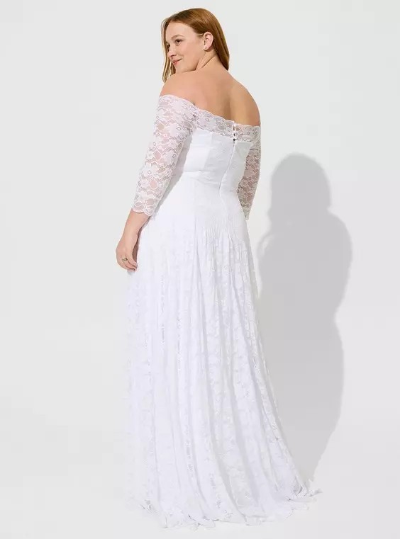 как выглядит Torrid Ever After White Lace Off-Shoulder A-Line Wedding Dress Size 14 1X фото