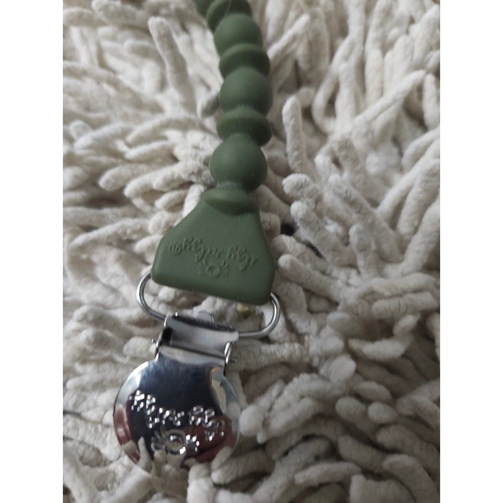 Itzy Ritzy silicone pacifier clip in a sage green color