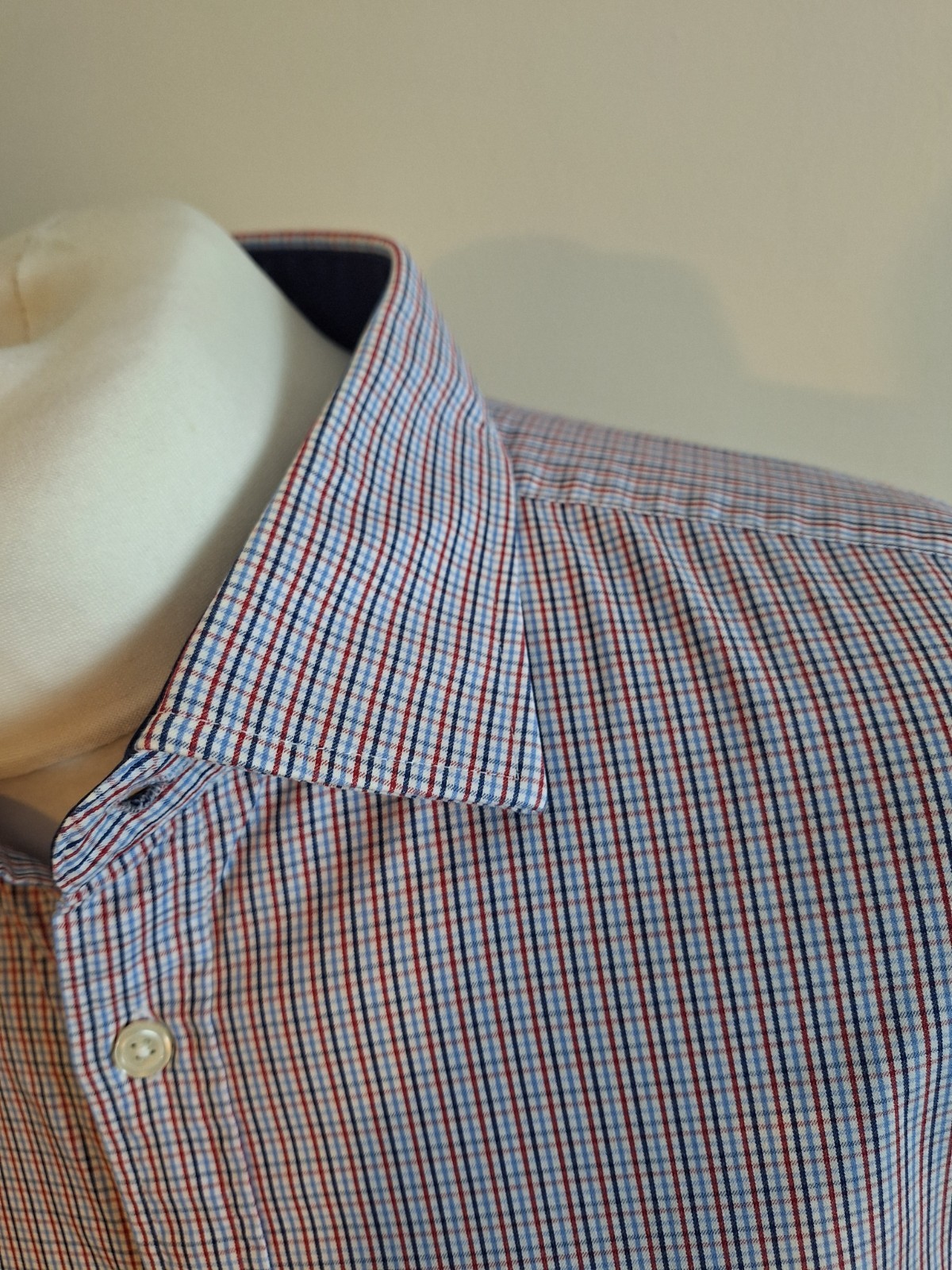 как выглядит T.M. Lewin Shirt Blue Red Check Small 18" - 38" Regular Fit Button Cuff фото