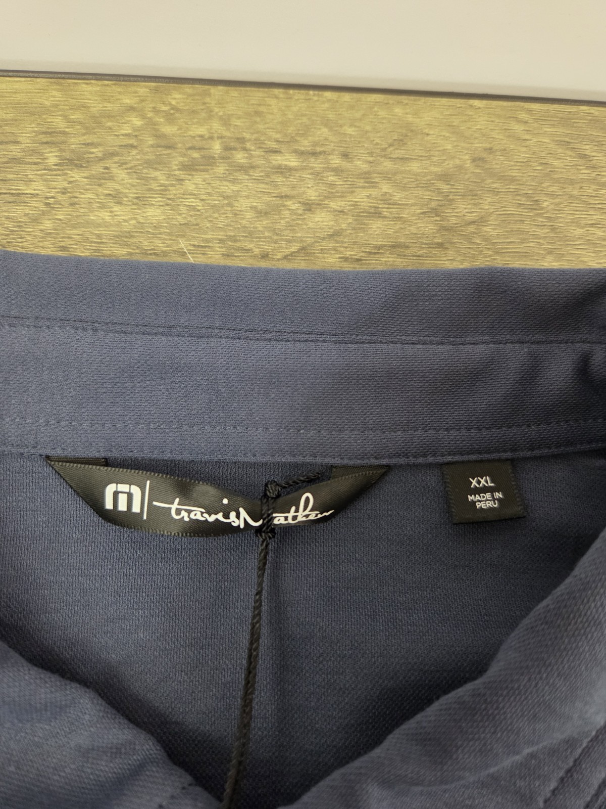 как выглядит Travis Mathew Performance Golf Polo Shirt Mens 2XL Blue Stretch Short Sleeve NEW фото