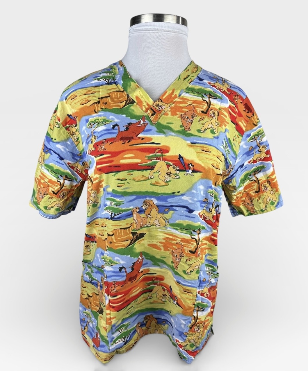 Disney Lion King Scrub Top Pumba, Timon, Samba, Nala Nurse CNA Tech V-Neck L