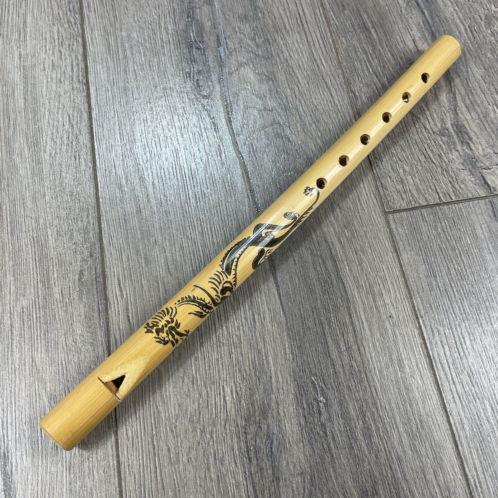 Chinese Bamboo Wood Wooden Flute Dragon Script Traditional Dizi Style 12.5 Size