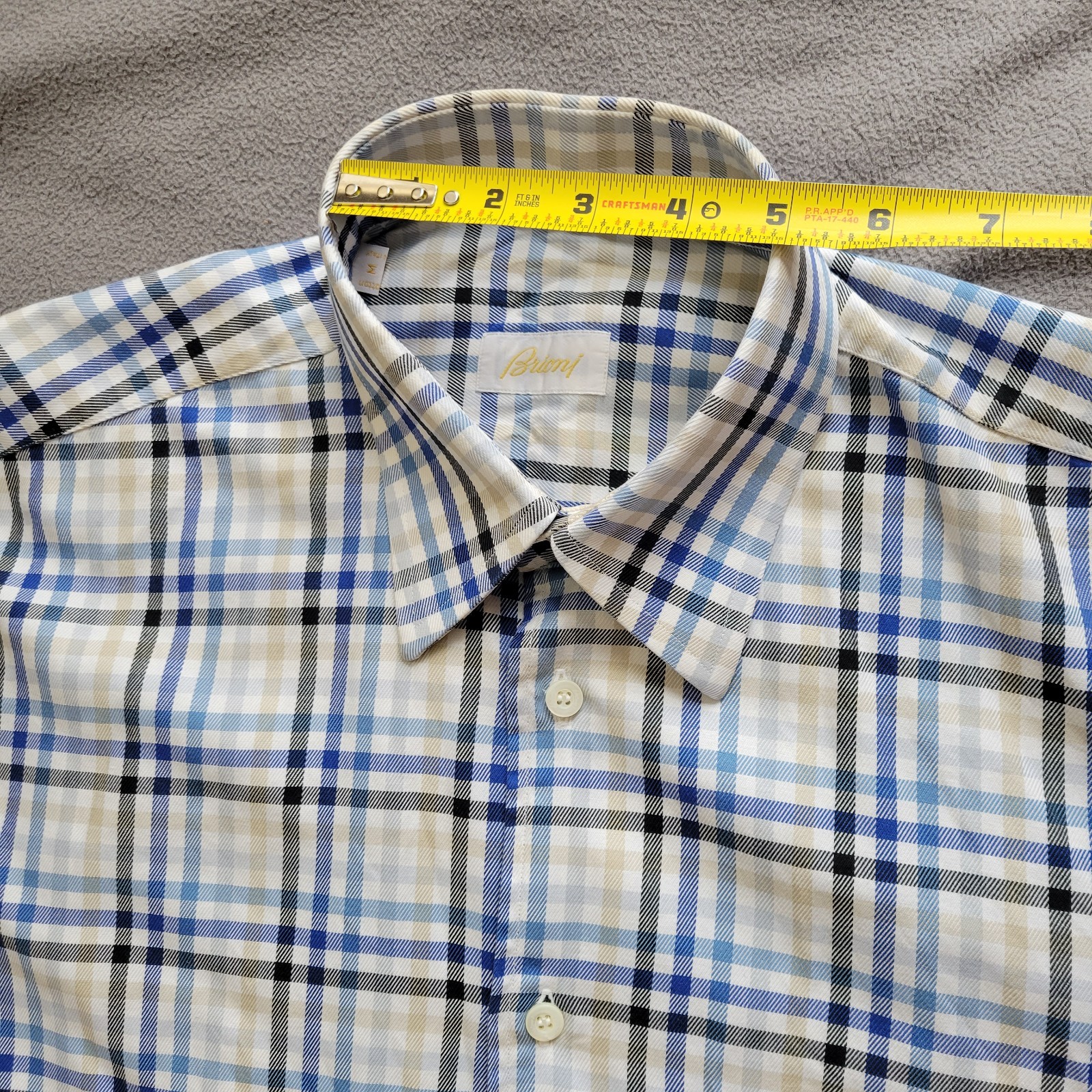 BRIONI Casual Dress Shirt Mens Medium Blue Plaid Cotton Luxury Made In Italy