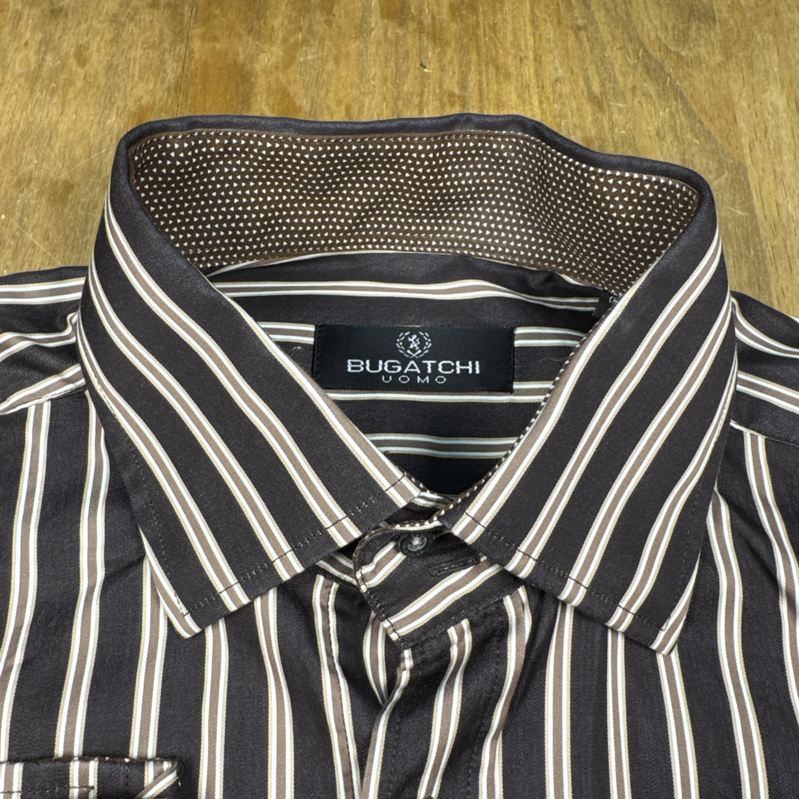 Bugatchi Uomo Long Sleeve Button Down Shirt Mens L Brown Stripe Flip Cuff
