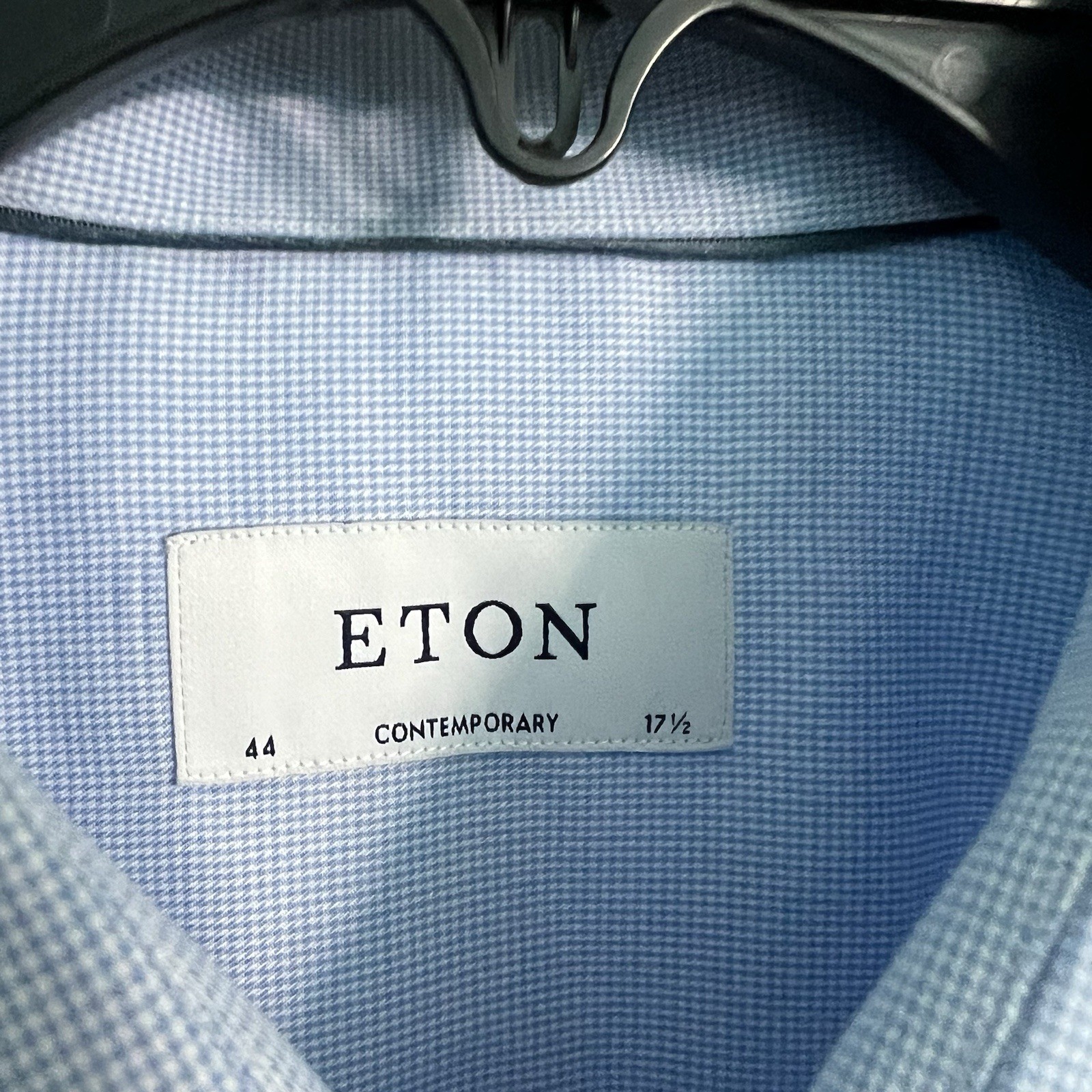 Eton Contemporary Mens 44 17.5 Blue Plaid Gingham Dress Shirt Long Sleeve