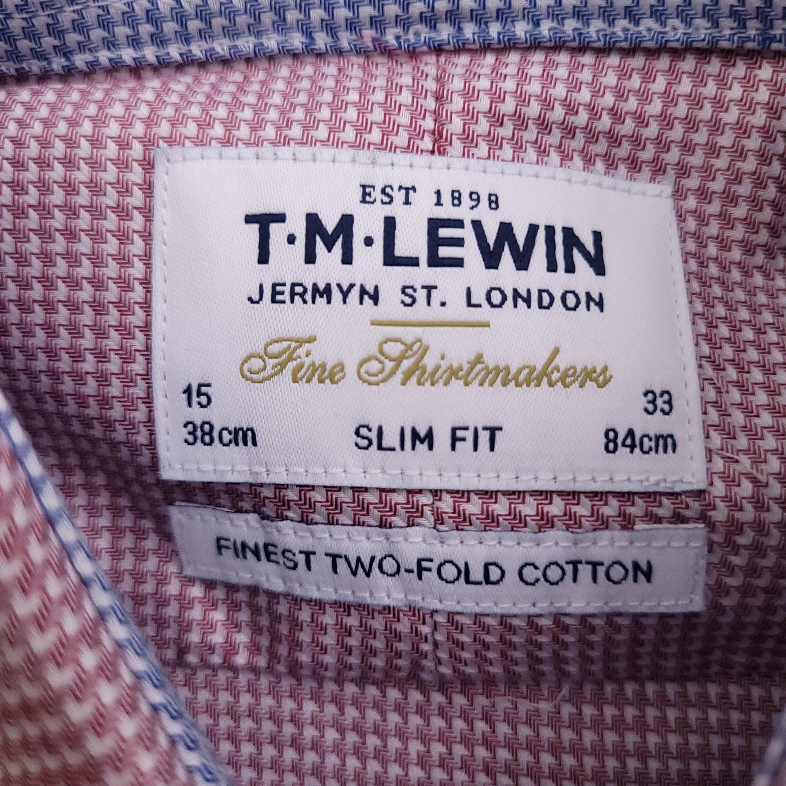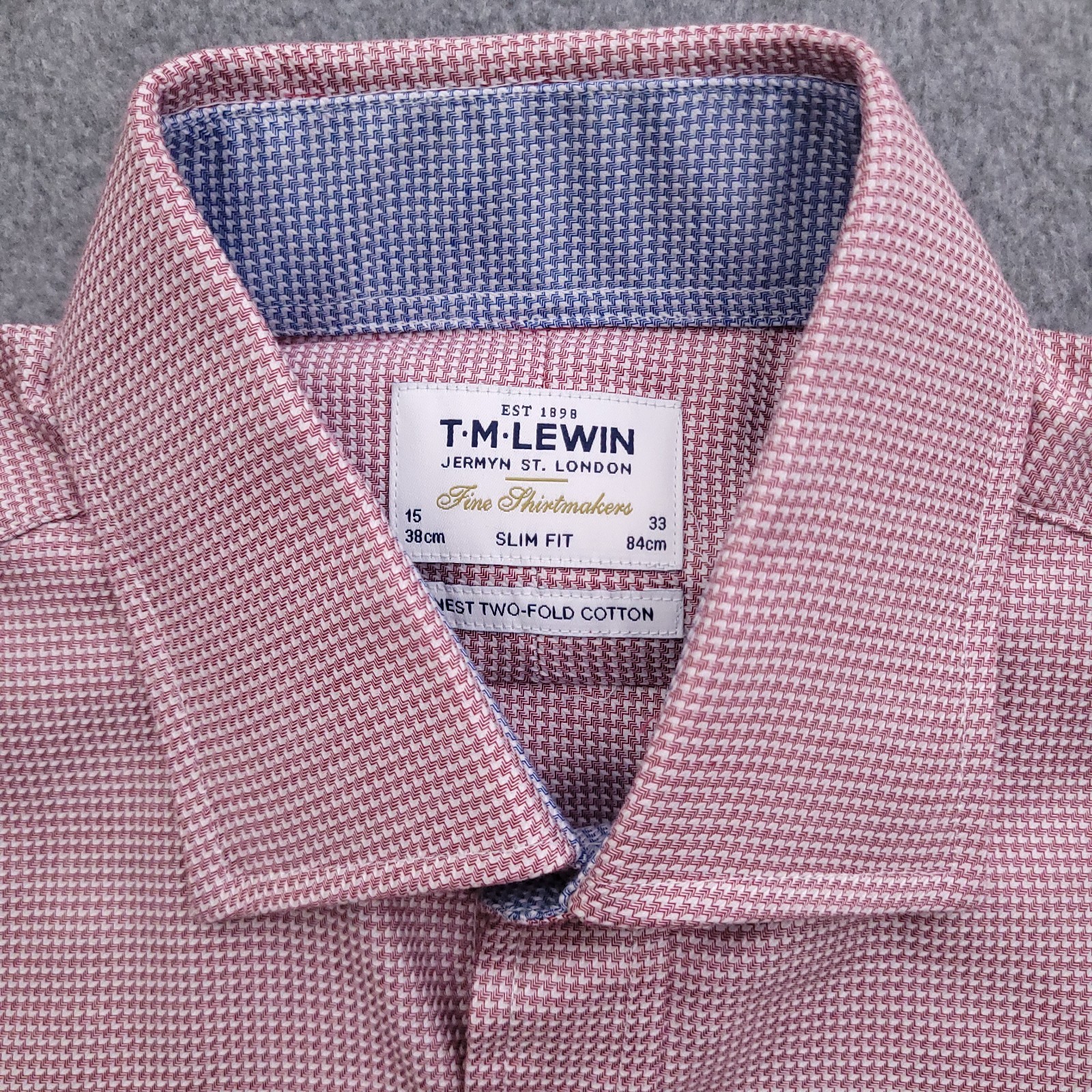 T M Lewin Dress Shirt Mens 15 33 Slim Fit Red White Chevron
