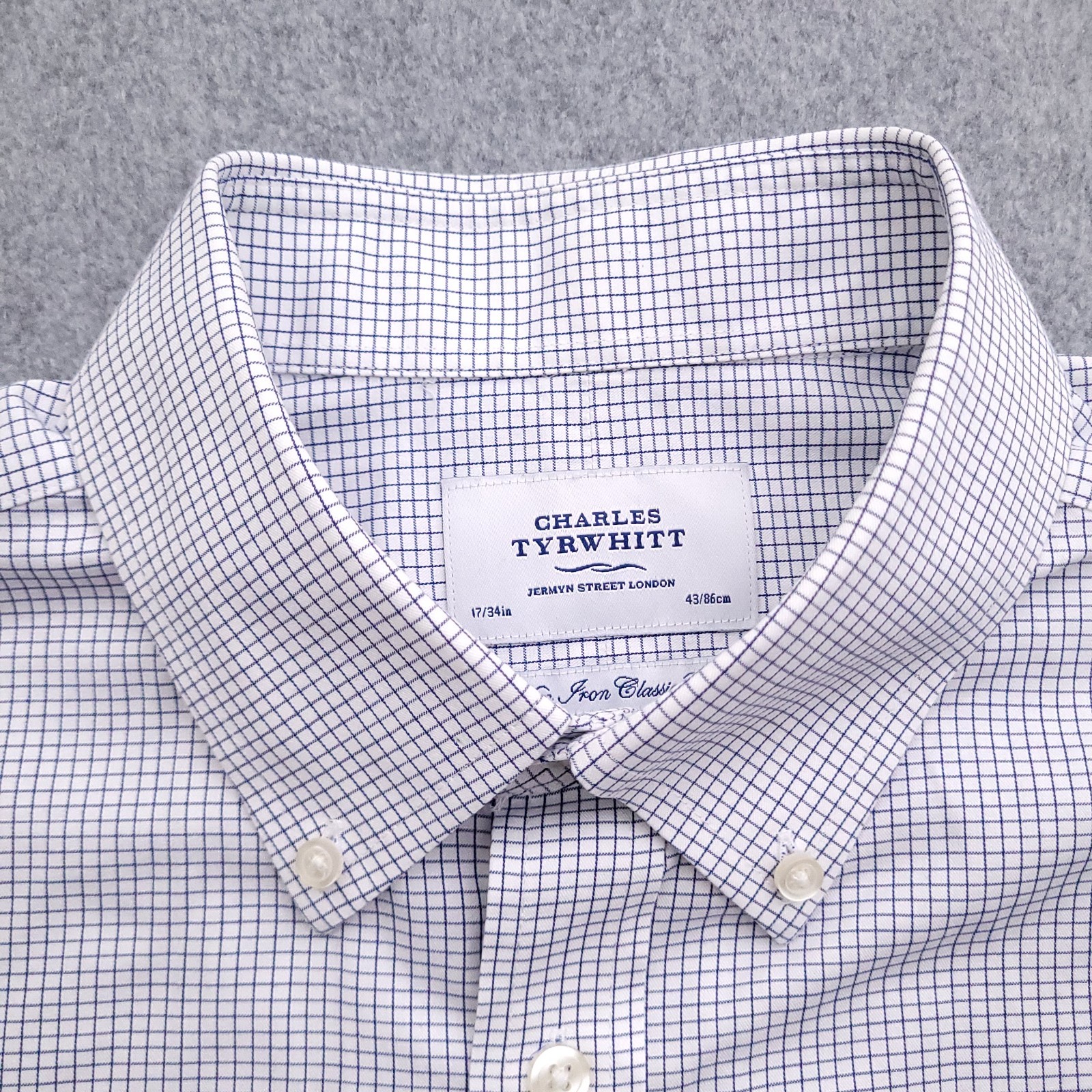 как выглядит Charles Tyrwhitt Dress Shirt Mens 17 34 Non Iron Classic Fit White Graph Check фото