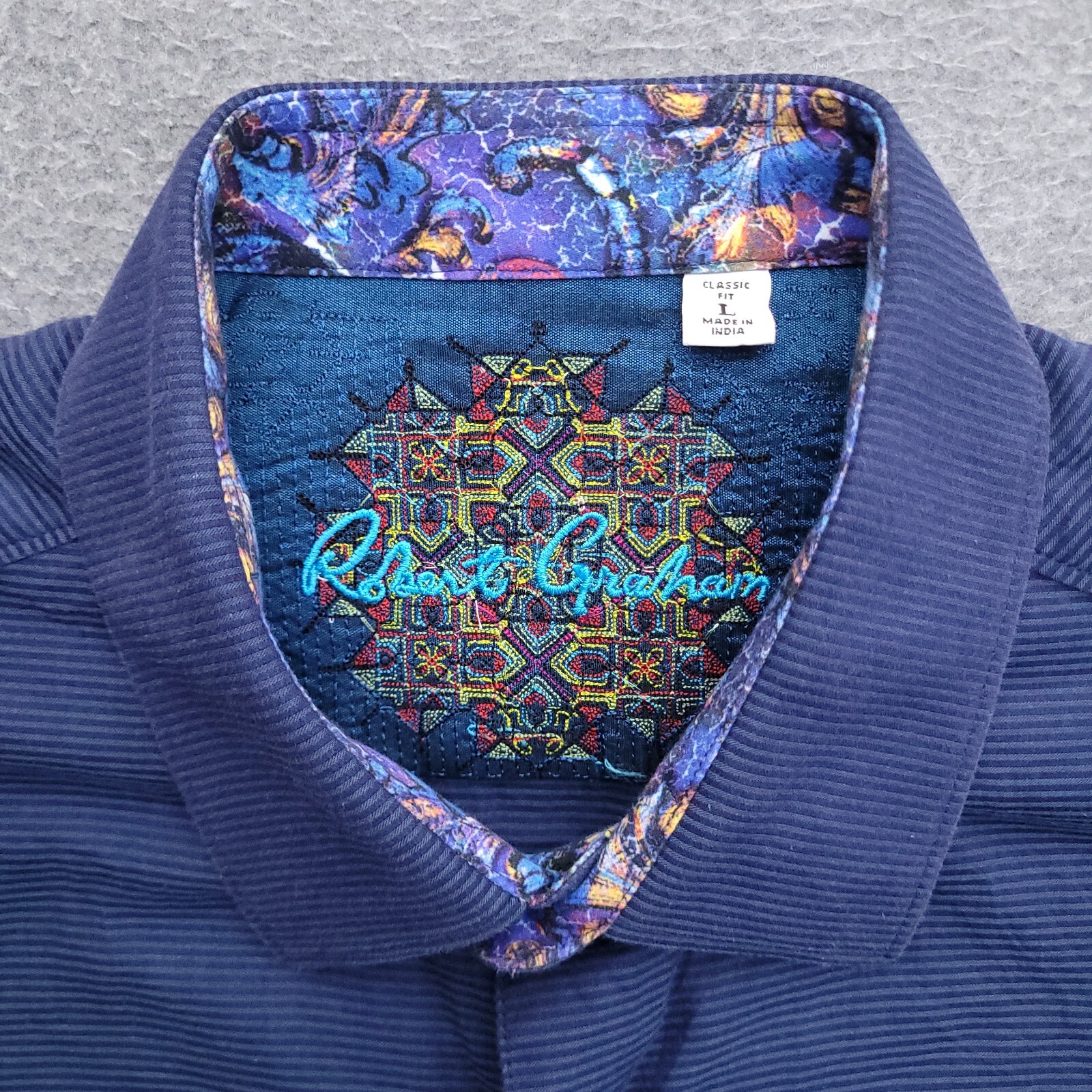 как выглядит Robert Graham Button Up Shirt Mens Large Classic Fit Blue Stripe Flip Cuff Blue фото