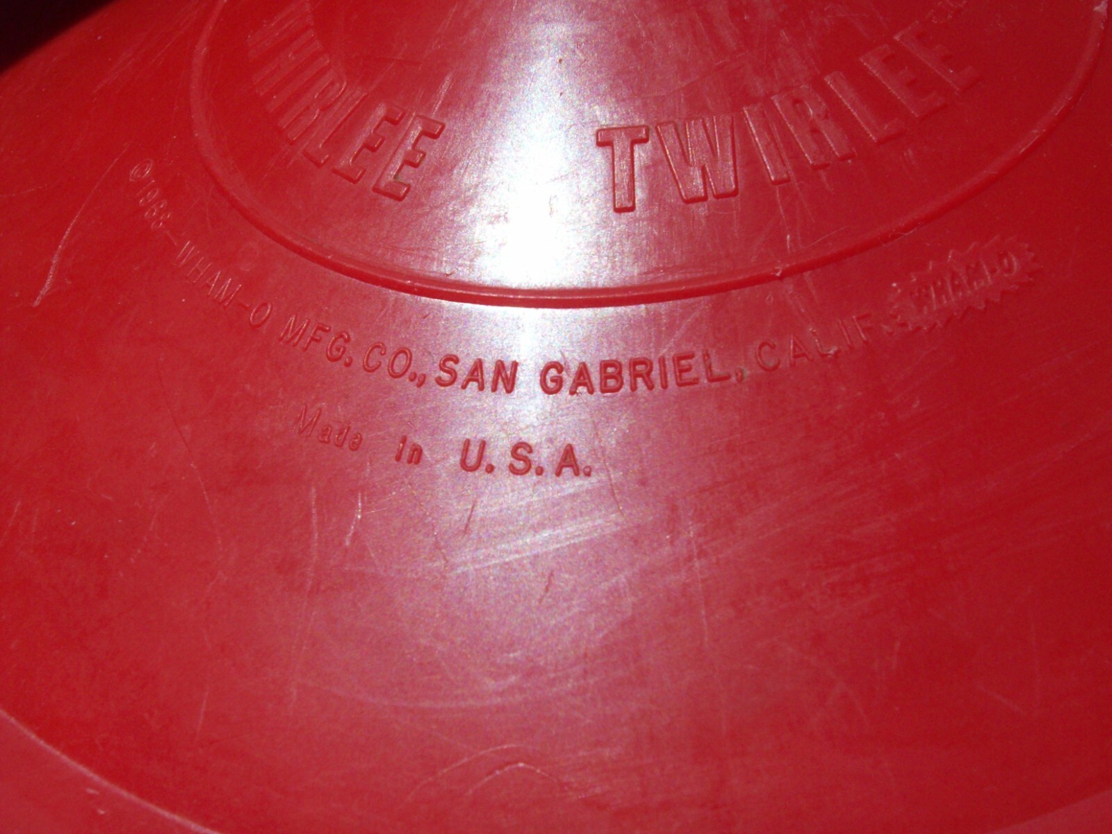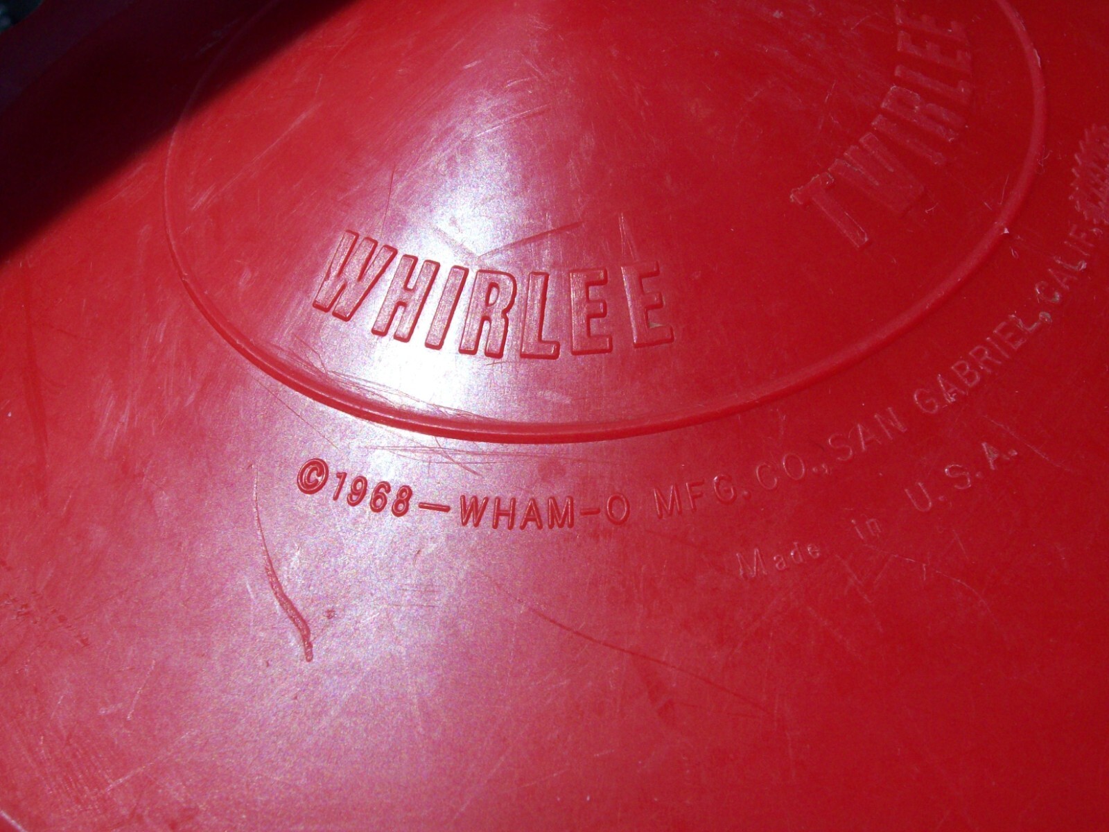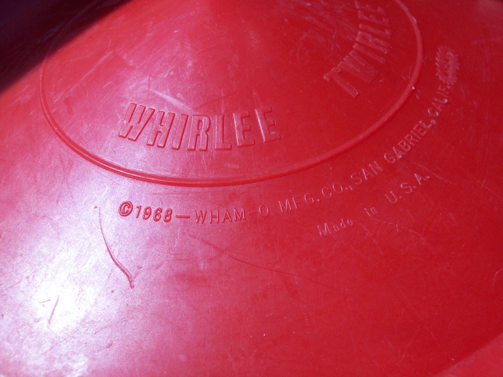 1968 Red WHAM-O WHIRLEE TWIRLEE Vintage Flying Disc SAN GABRIEL CALIF.