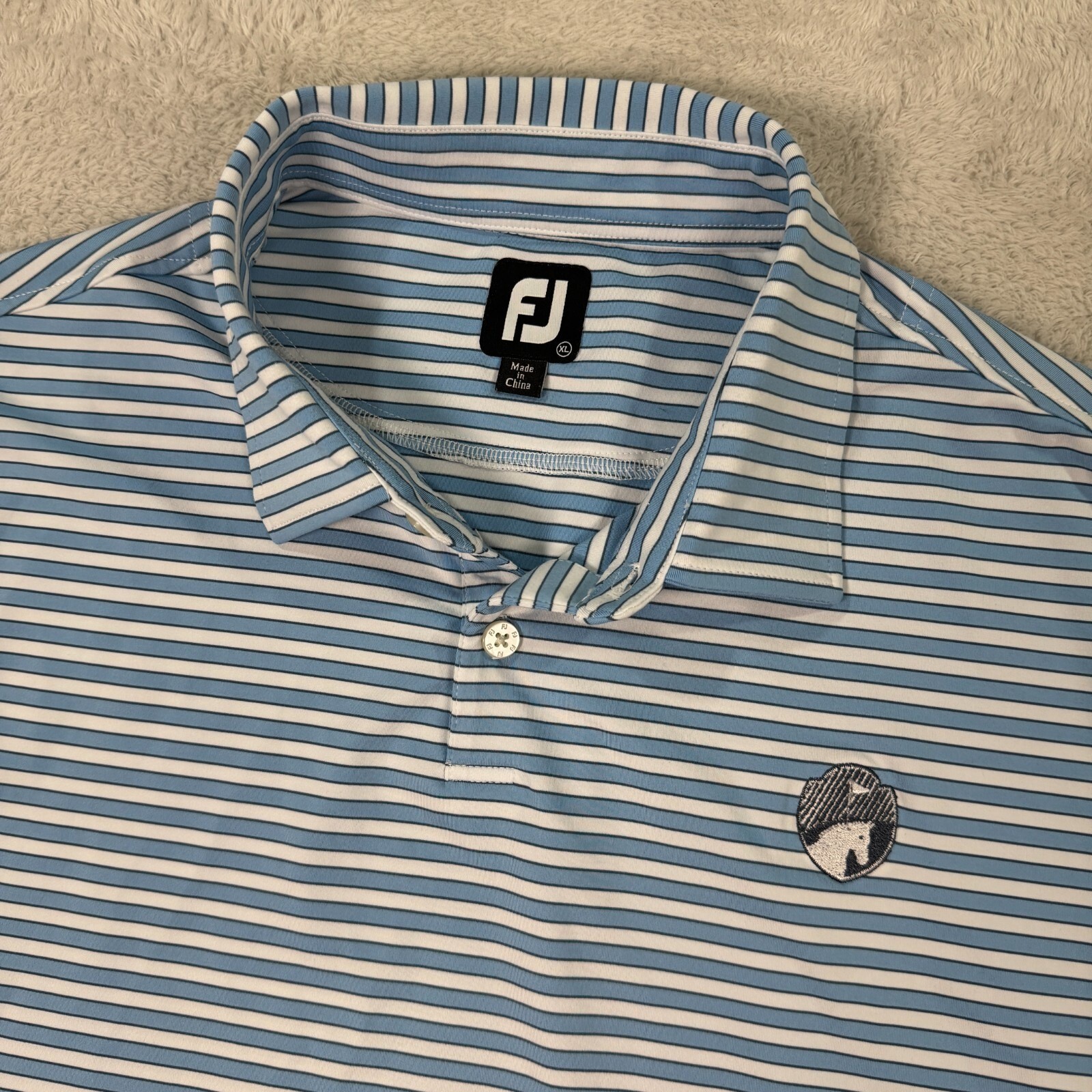 FootJoy Polo Shirt Mens XL Blue White Striped Stretch Golf Performance Stretch