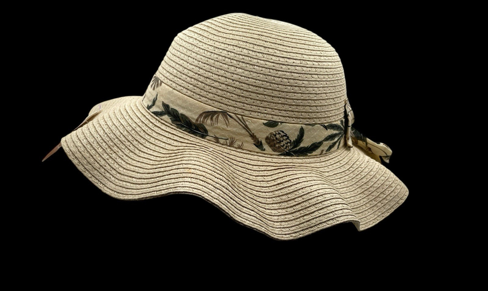 NWT Tommy Bahama Girls Youth Straw Beach Sun Hat Tropical Floral Ribbon One Size