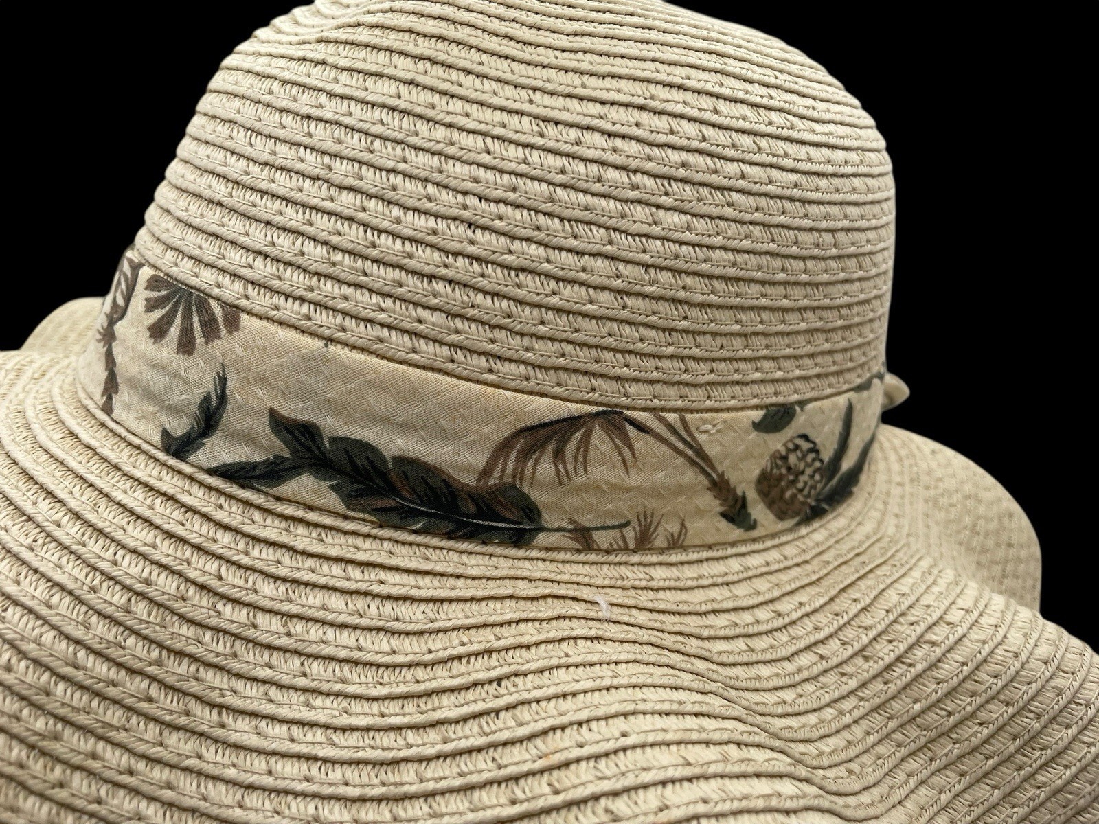 как выглядит NWT Tommy Bahama Girls Youth Straw Beach Sun Hat Tropical Floral Ribbon One Size фото