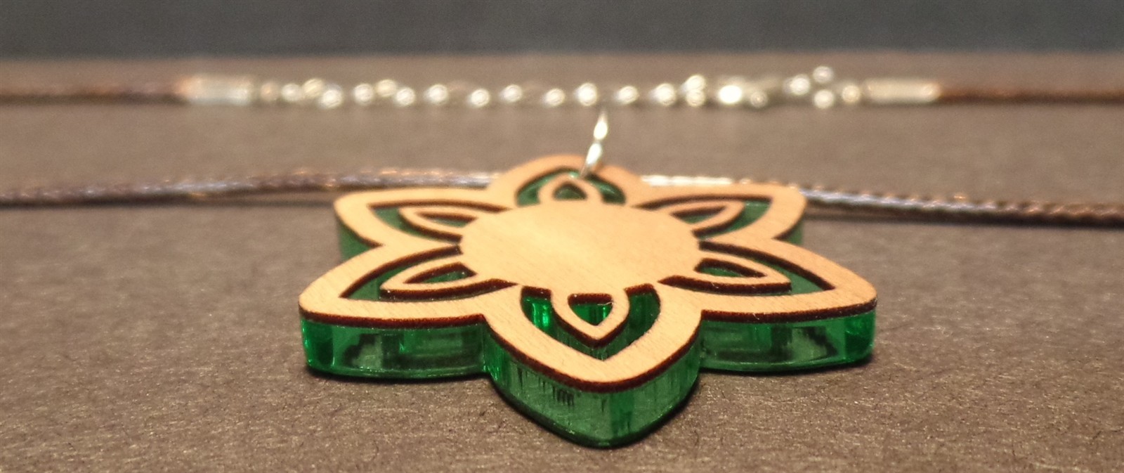 BOHO Teardrop Pierced Earrings Necklace Set 3 Wood Green Acrylic Flower USA 41